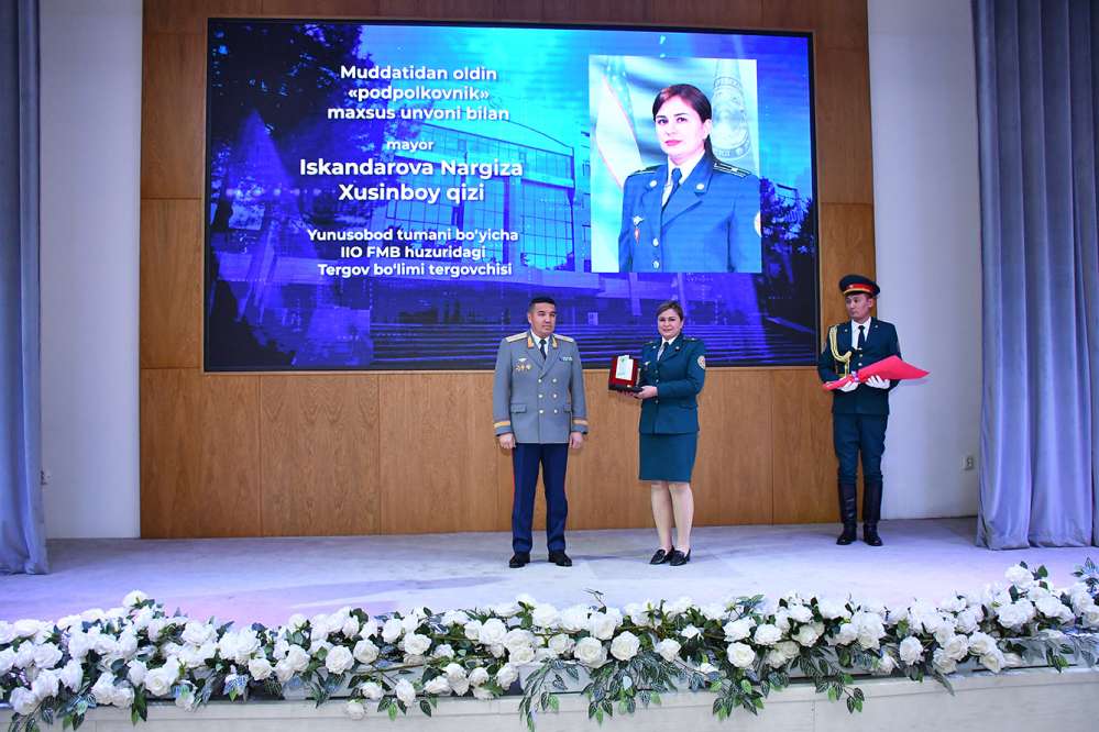 Tadbir davomida yuqori natijalarga erishgan xodimalarga mukofot va unvonlar topshirildi. Ichki ishlar organlarida ko‘p yillar faoliyat olib borgan faxriy ayollar, xizmat burchini o‘tash chog‘ida halok bo‘lgan xodimlarning oila aʼzolari ham eʼtibordan chetda qolmadi. Toshkent shahar Ichki ishlar bosh boshqarmasi xodimlaridan tashkil topgan “Nihol” guruhining konsert dasturi bilan chiqishlari esa yoqimli sovg‘a bo‘ldi.