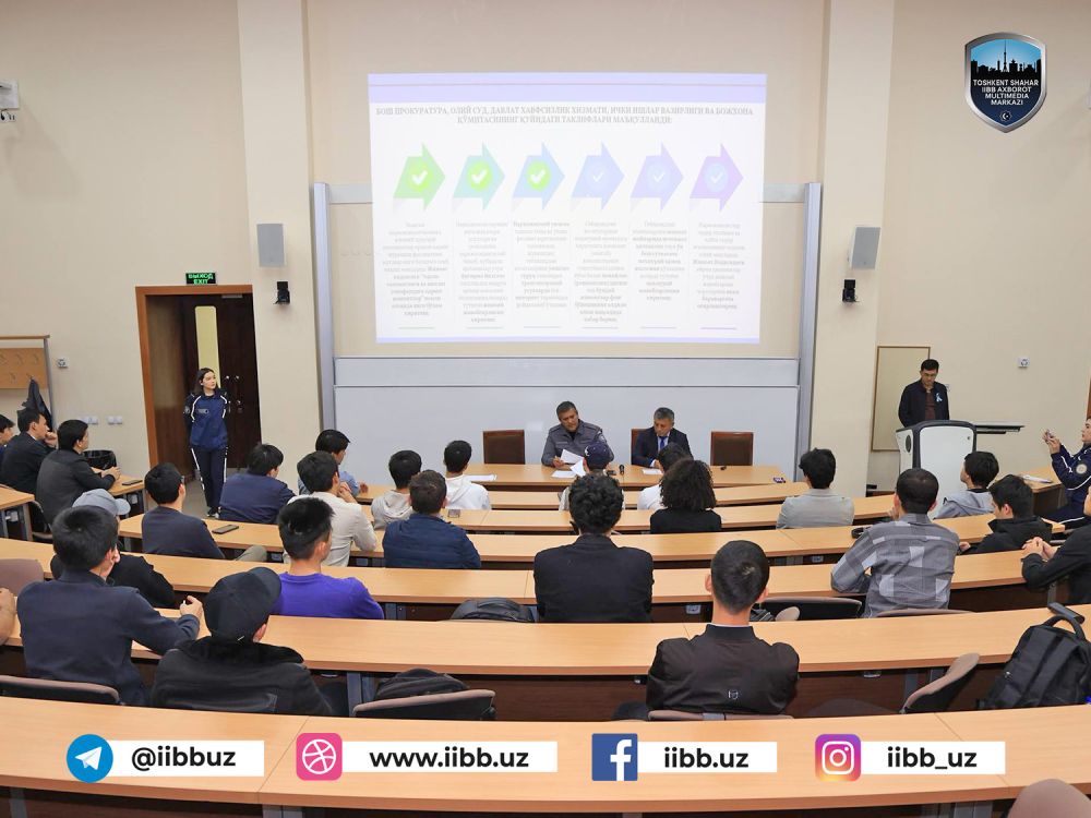 Xususan, giyohvandlik vositalari psixotrop va kuchli taʼsir qiluvchi moddalarning noqonuniy aylanmasiga chek qo‘yish, yoshlarda giyohvandlik illatiga murosasizlik munosabatini shakllantirish, ijtimoiy tarmoqlar orqali, aholi ayniqsa, voyaga yetmaganlar va yoshlar orasida giyohvandlik hamda zaharvandlik moddalarining tarqatilishi oldini olish masalalari qayd etildi. Giyohvandlik ortidan sodir bo‘layotgan mudhish va ayanchli jinoyatlar, oilalarning halokati, insonning tubanlashuvi kabi holatlar misollar orqali ochib berildi. Shuningdek, yoshlar sog‘lom hayot tarzini tanlashi, zulmatga emas nurga, yorqin kelajak tomon intilishlari, o‘quv dargohida faqat bilim egallash uchun harakat qilishlari lozimligi, mamlakatimizning komil va baxtli insonlari bo‘lib yetishishlari yo‘lida tinmay harakat qilishlari taʼkidlandi. Giyohvandlikning barcha ko‘rinishlariga mutlaq murosasizlik, axborot xurujlariga aldanmaslik, har qanday ubhali holatlarga hushyorlik bilan yondashishga chaqirilib, sog‘lom turmush tarziga amal qilish bo‘yicha muhim tavsiyalar aytib o‘tildi. Maʼruzalar so‘nggida talabalarning ham fikr-mulohazalari tinglanib, mavzuga aloqador ko‘plab savollariga javoblar berildi.