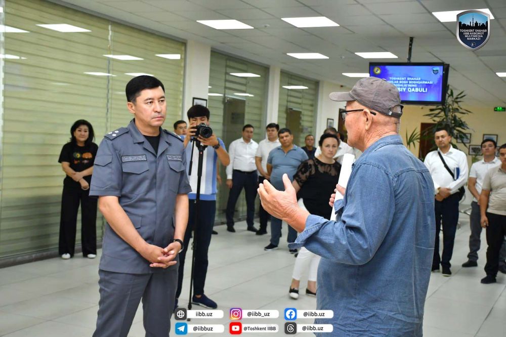 Joriy yilning 10 avgust kuni Toshkent shahar IIBB binosida Bosh boshqarma boshlig‘i, polkovnik Ravshan Sultanxodjayevning navbatdagi shaxsiy qabuli bo‘lib o‘tdi. Qabul jarayonida 55 nafar jismoniy va yuridik shaxslarning murojaatlari o‘rganildi. Ularning ayrimlari shu joyning o‘zida o‘rganilib, ijobiy hal etildi, 10 tasi bo‘yicha malakali huquqiy maslahat va tavsiyalar berildi. Qo‘shimcha o‘rganish talab qiladigan 15 ta murojaatlarning ijro muddatlari belgilanib, nazoratga olindi. Ichki ishlar organlari faoliyati bilan bevosita bog‘liq bo‘lgan murojaatlar mazmuniga ko‘ra: surishtiruv va tergov harakatlari; mol-mulk va pul mablag‘larini undirish; ichki ishlar organlariga xizmatga qabul qilish, qayta tiklash va kadr yo‘nalishiga oid; oila-turmush doirasidagi kelishmovchiliklar; O‘zbekiston respublikasi fuqaroligini olish kabilarni tashkil etdi.