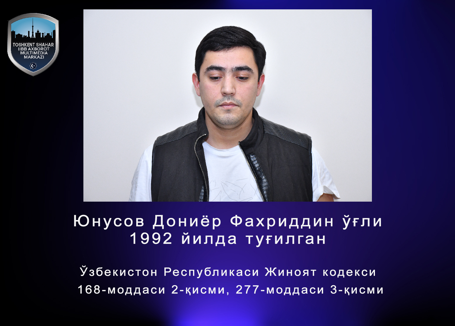 6. 1992 y.t. Yunusov Doniyor Faxriddin o‘g‘li (O‘zbekiston Respublikasi Jinoyat kodeksi 168-moddasi 2-qismi, 277-moddasi 3-qismi);