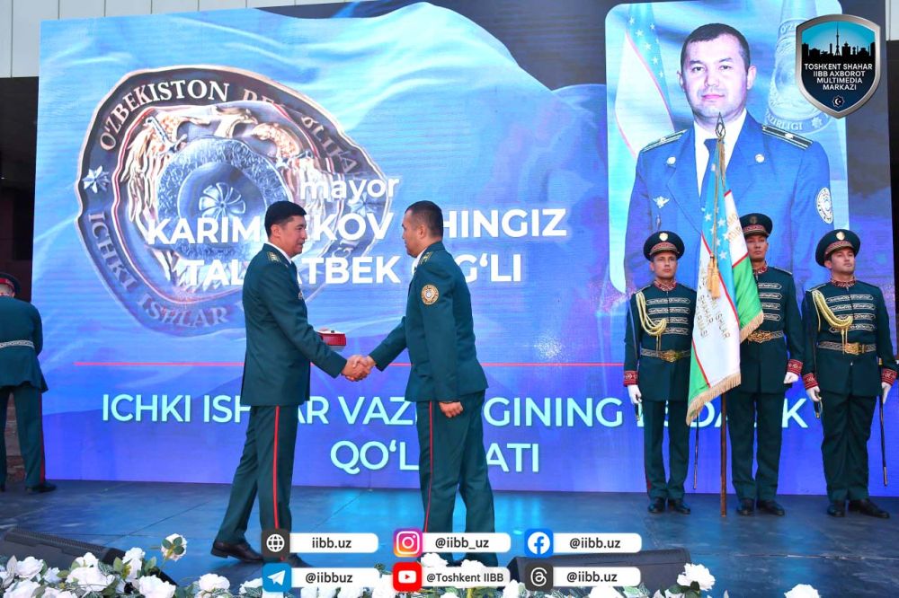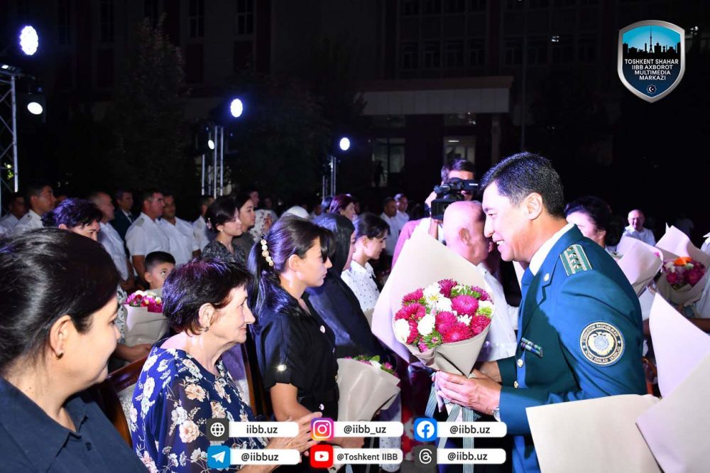 Marosimda xalqimiz osoyishtaligini saqlash, qonun ustuvorligi va tinchlikni ta’minlash, jamoat tartibini mustahkamlashdek sharafli burchini bajarish chog‘ida mardlik, jasorat va fidoyilik ko‘rsatgan Toshkent shahar IIBB va uning quyi tizimidagi bir guruh xodimlariga IIVning idoraviy ko‘krak nishonlari, faxriy yorliq va pul mukofotlari tantanali ravishda topshirildi. Shuningdek, uzoq yillar davomida IIO safida xizmat qilgan xodimlarni nafaqaga kuzatish marosim ham bo‘lib o‘tdi.