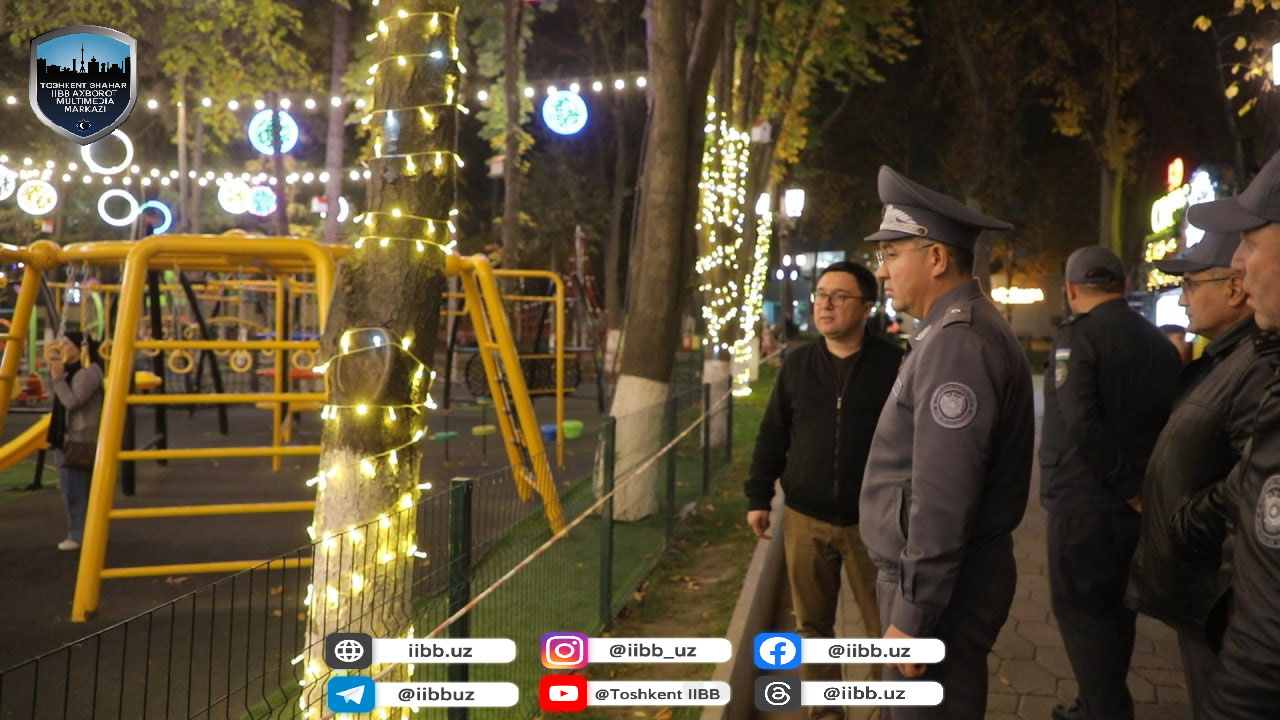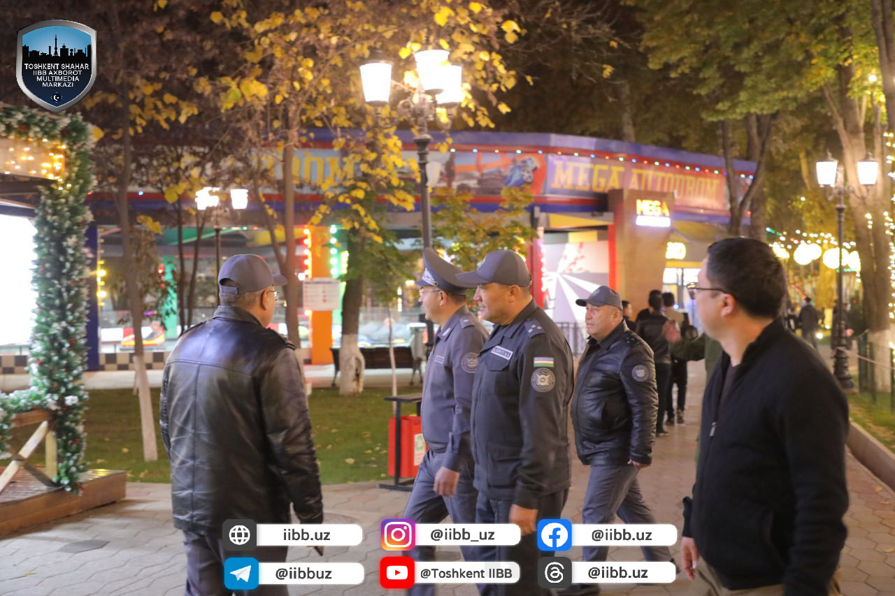 O‘rganish jarayonida poytaxt IIBB boshlig‘i Chilonzor tumanidagi istirohat bog‘ida bo‘lib, u yerda jamoat tartibini saqlash, jinoyatchilikni oldini olish yuzasidan qilinayotgan ishlarni o‘rgandi, istirohat bog‘iga tashrif buyuruvchilar uchun yaratilgan sharoitlar bilan tanishdi. Ushbu bog‘ hududi fuqarolar uchun eng zamonaviy texnologik imkoniyatlarga ega multimediyaviy o‘yin maydonlari hamda anʼanviy attraksionlar bilan jihozlangan. Ko‘plab kafe va restoranlar mehmonlar uchun doim muntazir, bog‘ nafaqat kunduzi, balki tungi vaqtda ham mijozlarga xizmat ko‘rsatib kelmoqda.