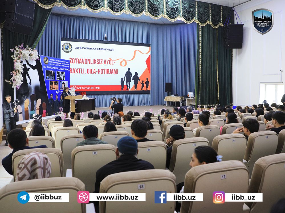25 ноября во всём мире отмечается Международный день борьбы за ликвидацию насилия в отношении женщин. Этот день направлен на привлечение внимания к проблеме гендерного насилия и поддержку международных инициатив, направленных на её решение. Сотрудники правоохранительных органов осуществляют комплекс профилактических мероприятий, направленных на предотвращение и сокращение случаев насилия в отношении женщин. Одним из ключевых мероприятий данного направления стала встреча, организованная по инициативе сотрудников УКД ОВД Мирзо-Улугбекского района столицы, где темой обсуждения стало «Женщина без насилия — счастлива, семья спокойна».