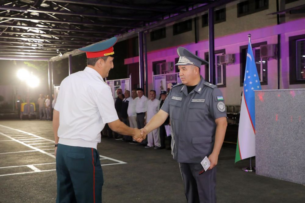 В ходе мероприятия за самоотверженную службу по обеспечению мира и спокойствия в стране, борьбу с преступностью, обеспечение общественного порядка и безопасности граждан были награждены: начальник Управления безопасности дорожного движения подполковник Мухаммад Адилов и инспектор дорожно-патрульной службы сержант Шерзод Холназаров – нагрудным знаком II степени «За безупречную службу в органах внутренних дел», инспектор Мухаммад Дадаев – памятными часами Министерства внутренних дел, а младшие сержанты Аббос Нуримов, Отабек Саидов и Куониш Хамитов – денежными премиями.