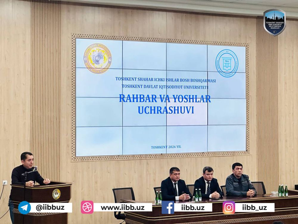 Защитить молодежь от пагубных занятий, чуждых нашему обществу и приводящих к разрушению будущего, указать им правильный путь к гармоничному развитию — это наша обязанность как взрослых. 8 февраля текущего года студенты Ташкентского государственного экономического университета, администрация учебного заведения, преподаватели и научные сотрудники приняли участие во «Встрече руководителя и молодёжи», посвящённой указанным темам. В профилактическом мероприятии, прошедшем в формате открытого диалога, заместители начальника и инспекторы профилактики УКД ОВД Учтепинского района ознакомили участников с некоторыми случаями из жизни, а также обсудили ряд вопросов, посвященных борьбе с преступностью, незаконному обороту наркотических средств и его тяжёлых последствий, киберпреступности и другими правонарушениями.