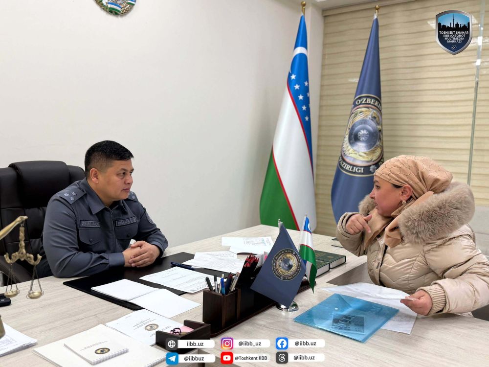 Ваколатли масъуллар томонидан фуқаролар мурожаатларини тинглаш, уларни қийнаётган саволларига жавоб топиш, муаммоларини қонун доирасида ҳал қилиш давлат сиёсати доирасида амалга оширилаётгани ўз натижакорлигини кўрсатмоқда. Хусусан, пойтахт Ички ишлар бош бошқармаси раҳбарияти томонидан ўтказиб келинаётган сайёр ҳамда шахсий қабуллари бу борада пойтахт аҳолиси ўртасида йиғилиб қолган кўплаб масалалар, муаммолар, чунончи ички ишлар идоралари фаолияти билан боғлиқ жараёнларда вужудга келган муаммоларга ечим топилмоқда. Тошкент шаҳар ИИББ раҳбариятининг навбатдаги қабулида юридик ҳамда жисмоний шахсларнинг мурожаатлари тингланди. Мурожаатчилар келтирган важларни жойида синчиклаб ўрганиш давомида уларнинг аксарияти қабулхонанинг ўзида ижобий ҳал этилди. Шунингдек, келтирилган далиллар атрофлича ўрганиш талаб қилинган мурожаатларнинг аксарияти бўйича ижро муддатлари қўшимча белгиланиб, қатъий назоратга олинди. Текширувларнинг малакали, қонун доирасида ҳамда адолатли олиб борилиши бўйича тегишли топшириқлар берилиб, натижаларидан мурожаатчиларни ёзма хабардор қилиш кўрсатиб ўтилди.