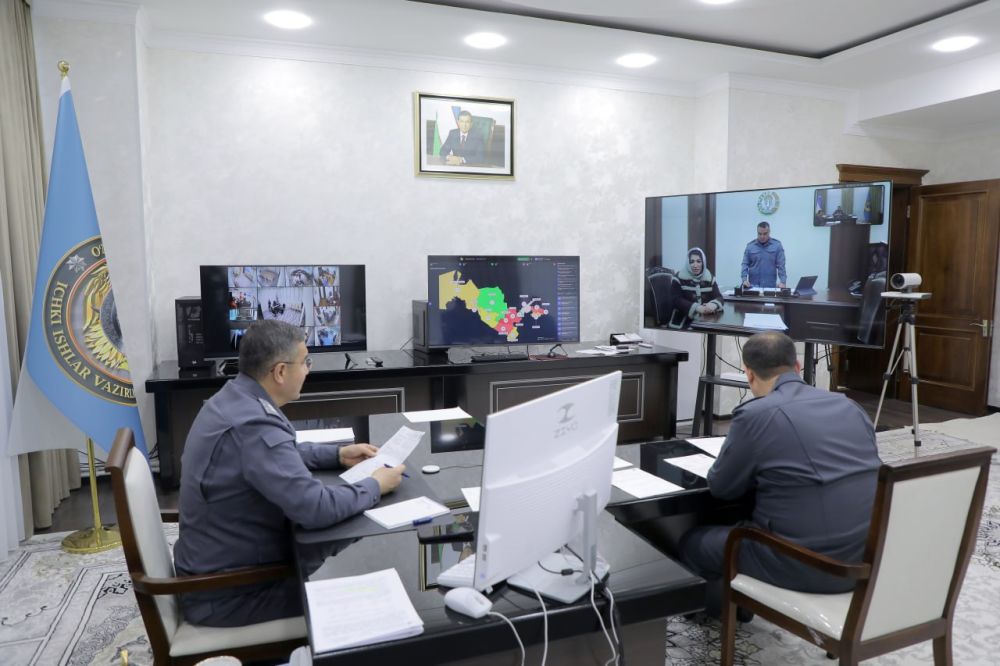 Фуқаролар учун қулайлик яратиш, шунингдек, об-ҳаво шароити ва ҳудудий масофани инобатга олган ҳолда қабул Тошкент шаҳри аҳолиси учун бевосита, Қорақалпоғистон Республикаси ҳамда вилоятлар аҳолиси учун эса ҳудудий ички ишлар органлари биноларидан видеоконференц-алоқа орқали онлайн тарзда ташкил этилди.