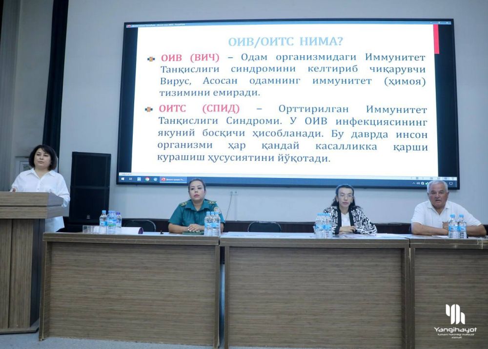 Тадбир давомида марказ мутахассислари томонидан умумтаълим мактаблари директорлари ҳамда тиббиёт ходимларига ОИВ инфекцияси, унинг юқиш йўллари, профилактикаси ва зарурий эҳтиёт чоралари ҳақида батафсил тушунчалар берилди. Шунингдек, иштирокчиларга тақдимотлар ҳамда савол-жавоблар орқали мавзу бўйича зарур билим ва кўникмалар берилди.