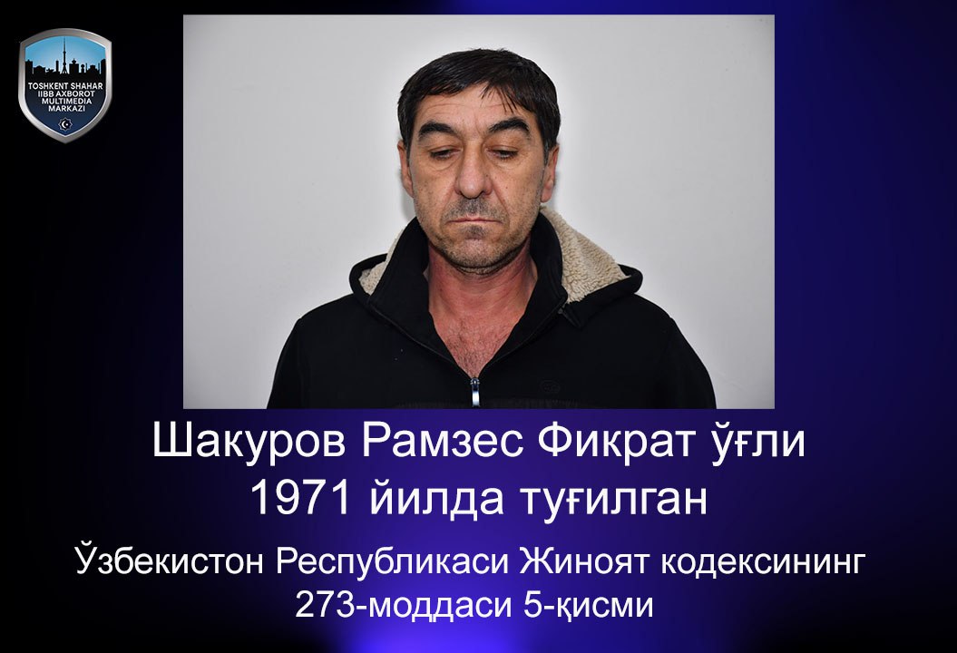 4. 1971 й.т. Шукуров Рамзес Фикрат ўғли (Ўзбекистон Республикаси Жиноят кодекси 273-моддаси 5-қисми, жуда кўп миқдорда гиёҳвандлик воситасини ўтказиш).
