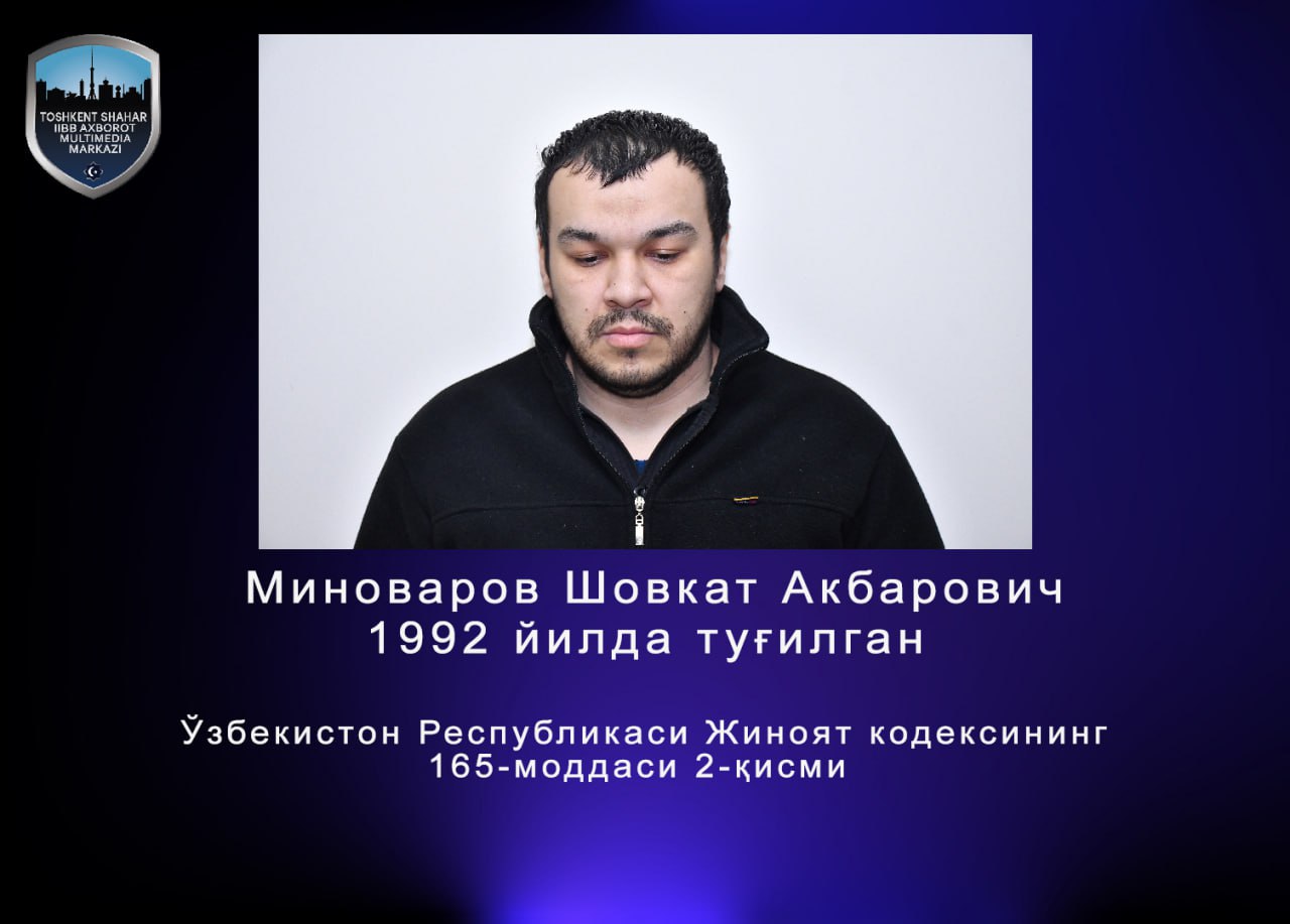 Пойтахтда Тошкент шаҳар ИИББ ва ҳамкор ташкилотлар томонидан ўтказилаётган тезкор-профилактик тадбирларнинг “Долзарб қирқ кунлиги” доирасида бир қатор жиноятларни содир этган шахслар ушланди. Ушбу шахслар Тошкент шаҳар ИИББ ҳузуридаги Тергов бошқармаси томонидан тергов қилинаётган жиноят иши бўйича гумон қилинувчи тарзида жалб этилган: