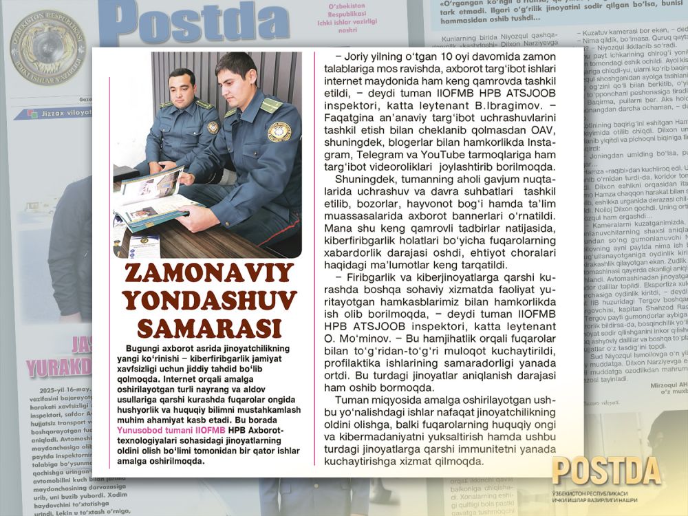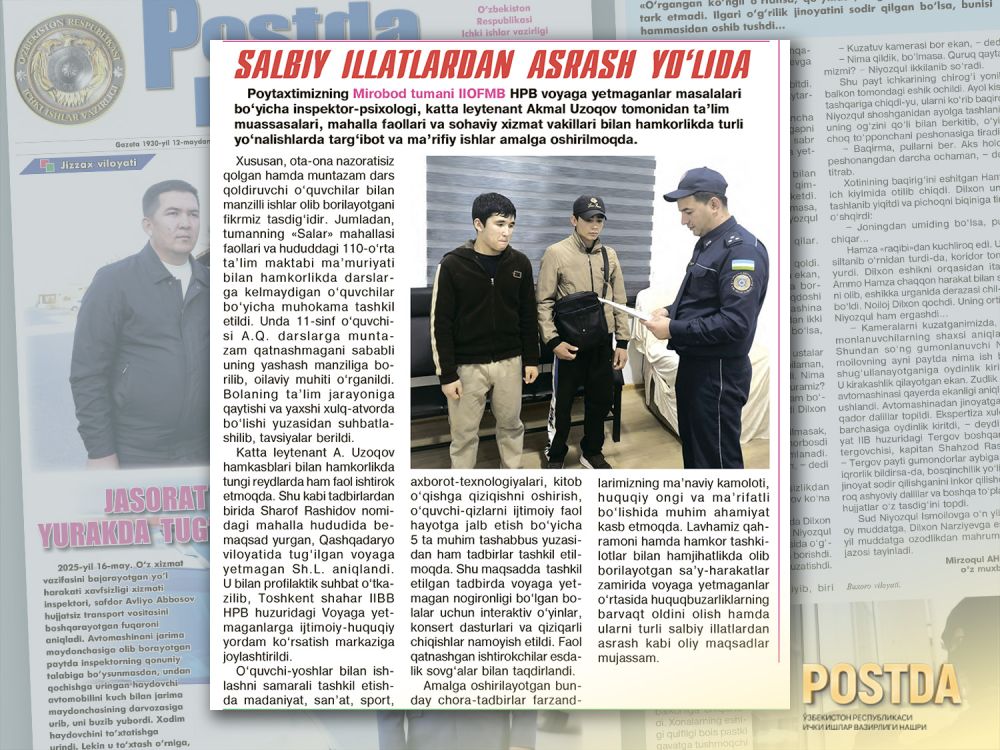 Yoshlarni turli salbiy illatlardan asrash, huquqiy ongi, madaniyatini shakllantirish, bugungi kunda ijtimoiy tarmoqlar orqali xavf solayotgan giyohvandlik, diniy-ekstremizm, buzg‘unchi g‘oyalar, kiberjinoyatlardan asrash borasida poytaxt ichki ishlar organlari tomonidan qator tizimli ishlar amalga oshirib kelinmoqda. Shunday tadbirlarning navbatdagi ochiq muloqot shaklidagi uchrashuvlar Yunusobod tumani IIO FMB boshlig‘i, polkovnik Mahkam Vafoyev tomonidan o‘tkazildi. Yunusobod tumanida joylashgan Toshkent Davlat iqtisodiyot universitetining talabalari ishtirokida, shuningdek Muhammad Al-Xorazmiy nomidagi Toshkent Axborot texnologiyalari Universiteti talabalari orasida bo‘lib o‘tgan uchrashuvlarda sohaviy xizmatlar mas’ullari ham qatnashdilar. “Xavfsiz va sog‘lom yurt” oyligi doirasida o‘tkazilayotgan ma’naviy-ma’rifiy tadbirlar yoshlarning huquqiy madaniyatini yuksaltirish, xavfsizlik qoidalariga rioya qilish hamda sog‘lom turmush tarzini targ‘ib qilishga qaratilmoqda. Tadbirlarda so‘zga chiqqan polkovnik M.Vafoyev jinoyatchilikning oldini olishda yoshlarning faolligi, ijtimoiy mas’uliyati va onlayn xavfsizlikni ta’minlash masalalari borasida so‘z yuritib, salbiy holatlardan himoyalanish bo‘yicha kerakli tavsiyalar va yo‘riqlarga to‘xtaldi. Talabalar oldida so‘zga chiqqan sohaviy xizmat xodimlari mavzuni davom ettirib, yoshlarga huquqbuzarliklarning ayanchli oqibatlari, jamoat tartibini saqlashda aholining, xususan yoshlarning o‘rni, ular orasida keng tarqalib borayotgan giyohvandlik vositalari, psixotrop, kuchli ta’sir qiluvchi moddalarning noqonuniy aylanmasi, tarqatilishi bilan bog‘liq jinoyatlar va boshqa xavfli omillar haqida batafsil ma’lumotlar taqdim etdilar. Muloqot yakunida talabalarning savollariga javob berilib, xavfsizlik bo‘yicha amaliy tavsiyalar, favqulodda holatlarda to‘g‘ri harakat qilish qoidalari tushuntirildi. Seminar yoshlar bilan hamkorlikni mustahkamlash, ularning huquqiy savodxonligini oshirish va sog‘lom turmush tarziga bo‘lgan ishtiyoqini kuchaytirishga xizmat qilishi tabiiy.