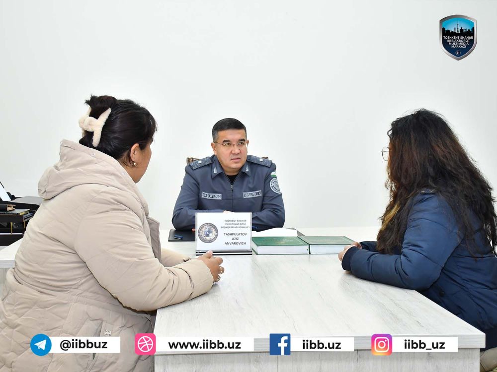 Joylarda rahbar xodimlarning aholi bilan yaqindan muloqot yuritib, ularni qiynayotgan, o‘ylantirayotgan masalalar, muammolariga yechim, savollariga javob topish borasidagi ochiqdan-ochiq muloqotlar joriy yilda ham davom ettirilmoqda. Fikrimizning isboti o‘laroq bugun Toshkent shahar IIBB asosiy binosida Bosh boshqarma boshlig‘i, general-mayor Aziz Tashpulatovning poytaxt fuqarolari bilan navbatdagi shaxsiy qabuli bo‘lib o‘tganini taʼkidlash joiz. Unda o‘ttizga yaqin fuqarolar o‘zlarining huquqiy, ijtimoiy, maishiy va boshqa turdagi murojaatlari bilan qatnashdi. Aksariyat fuqarolarning murojaatlari shu yerning o‘zida tezkor hal etildi. Qo‘shimcha o‘rganish va tekshiruv talab qiladigan murojaatlar rahbar tomonidan qatʼiy nazoratga olindi. Murojaatlarni mazmunan tahlil etadigan bo‘lsak, mahalla obodonligini yaxshilash, hudud sektorlaridagi mavjud muammolar, tergovga qadar tekshiruv va tergov jarayonlari bilan bog‘liq holatlar tashkil etdi. Fuqarolarning aksariyati huquqiy tushuntirish va qonuniy maslahatlardan qoniqish hosil qilishdi. Poytaxt aholisi muammolariga birgalikda ijobiy yechim topish, savollariga qonunan javob berish, manfaatlarini himoya qilish borasidagi uchrashuv va muloqotlar muntazam davom ettiriladi.