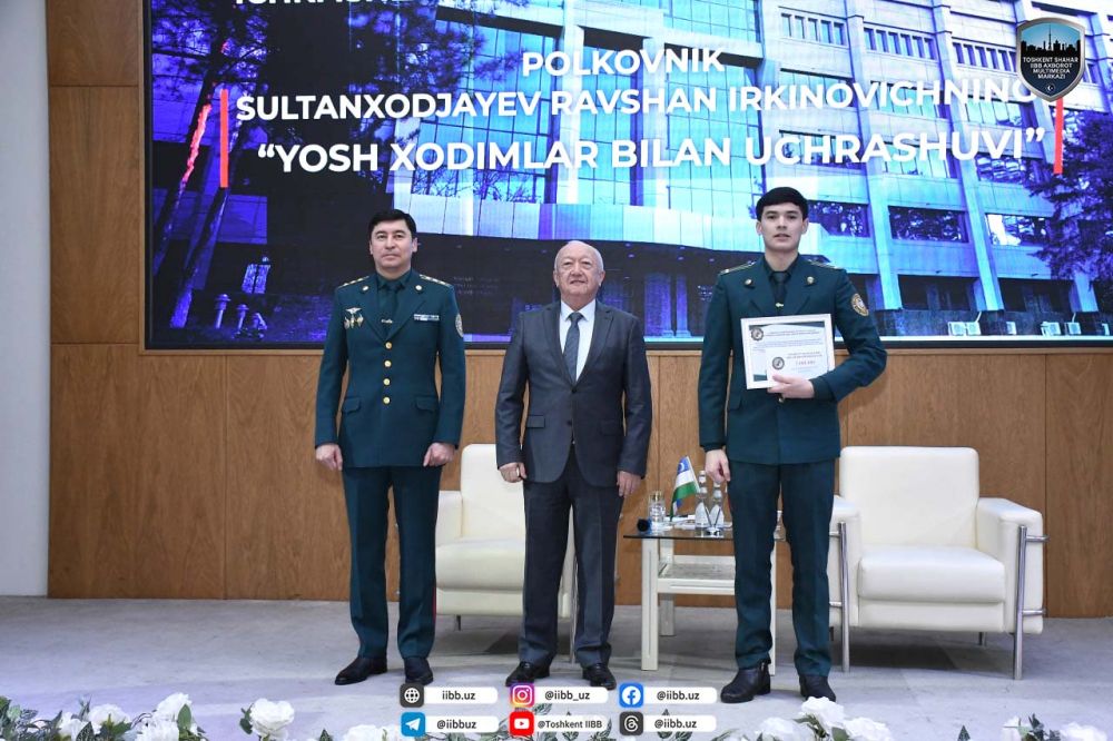 Yosh xodimlarni vatanparvarlik, ajdodlar merosi, qadriyatlarimizga hurmat, kasbiga, burchiga sadoqat ruhida tarbiyalash mas’uliyatli hamda sharafli ish. Ichki ishlar organlari xizmatiga ilk qadam qo‘ygan yoshlarni qo‘llab-quvvatlash, to‘g‘ri yo‘llanma berish orqali kasbga yo‘naltirilishi xizmat samaradorligini ta’minlash, ish faoliyatida yuqori natijalar ko‘rsatishida muhim ahamiyatga ega. Shu maqsadlarda Toshkent shahar Ichki ishlar bosh boshqarmasi apparati, hududiy tuzilmalari sohaviy xizmatlarida xizmat olib borayotgan yosh xodimlar, ularning ota-onalari ishtirokida “Rahbar va yoshlar uchrashuvi” tadbiri tashkillashtirildi. Tadbirda Bosh boshqarma boshlig‘i, polkovnik Ravshan Sultanxodjayev hamda uning maslahatchisi, iste’fodagi polkovnik Murod Karimov ishtirok etdi.