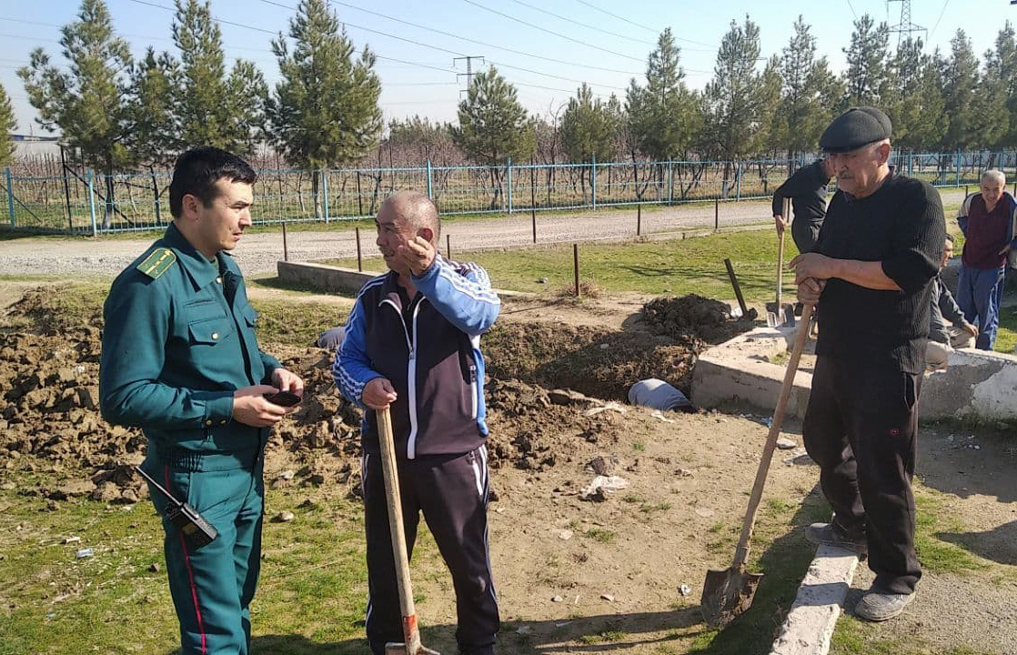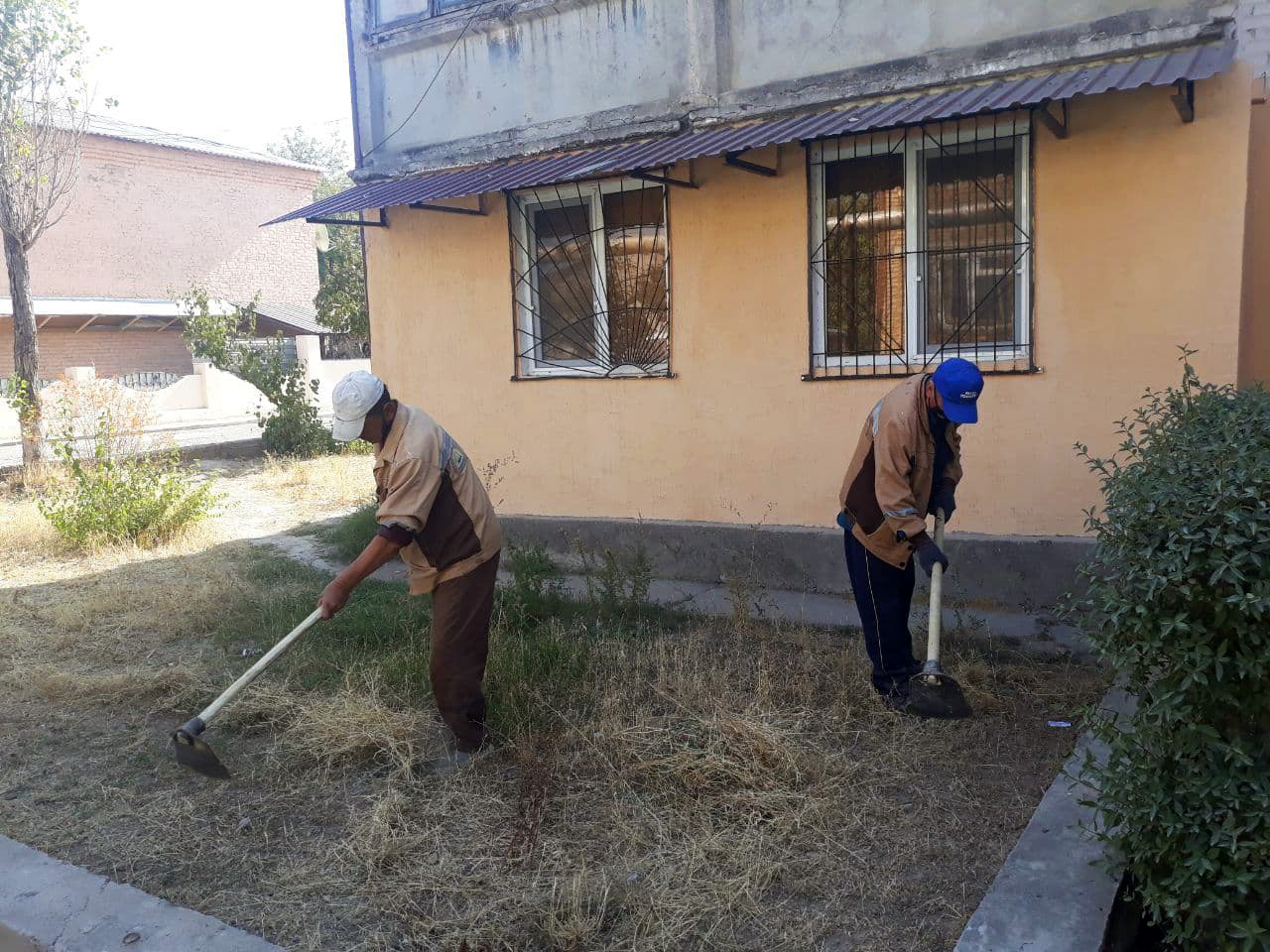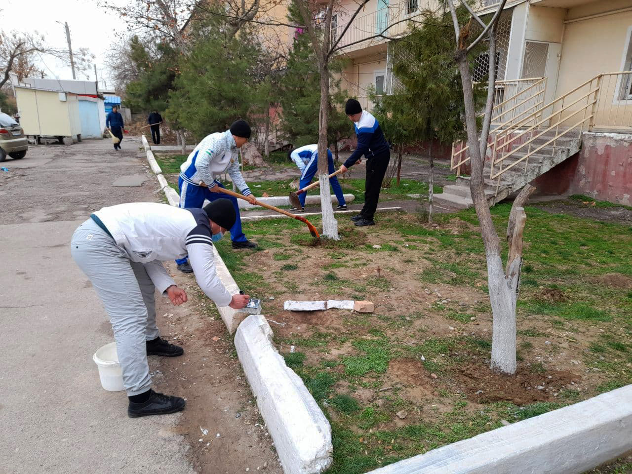 Продолжается работа по благоустройству и озеленению жилых кварталов. Совместно с заинтересованными организациями проводятся хашары, очищаются от мусора арыки и улицы, идет посадка фруктовые и декоративные деревьев.