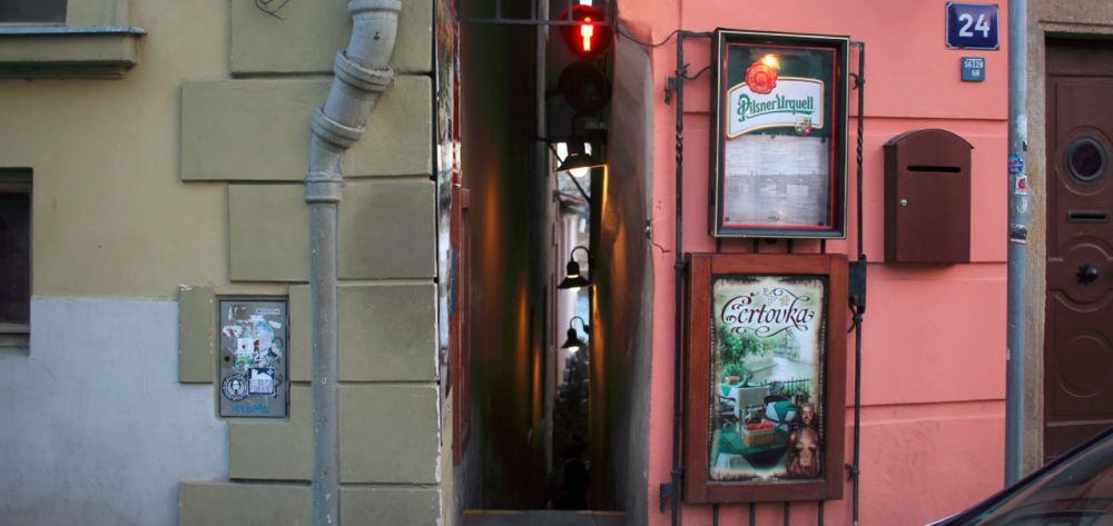 ▪️ В одном из кварталов Праги есть узкий коридор. В нем может поместиться только один человек. По обеим сторонам этого коридора есть светофоры.  Люди, желающие пройти по коридору, движутся в сторону светофора.