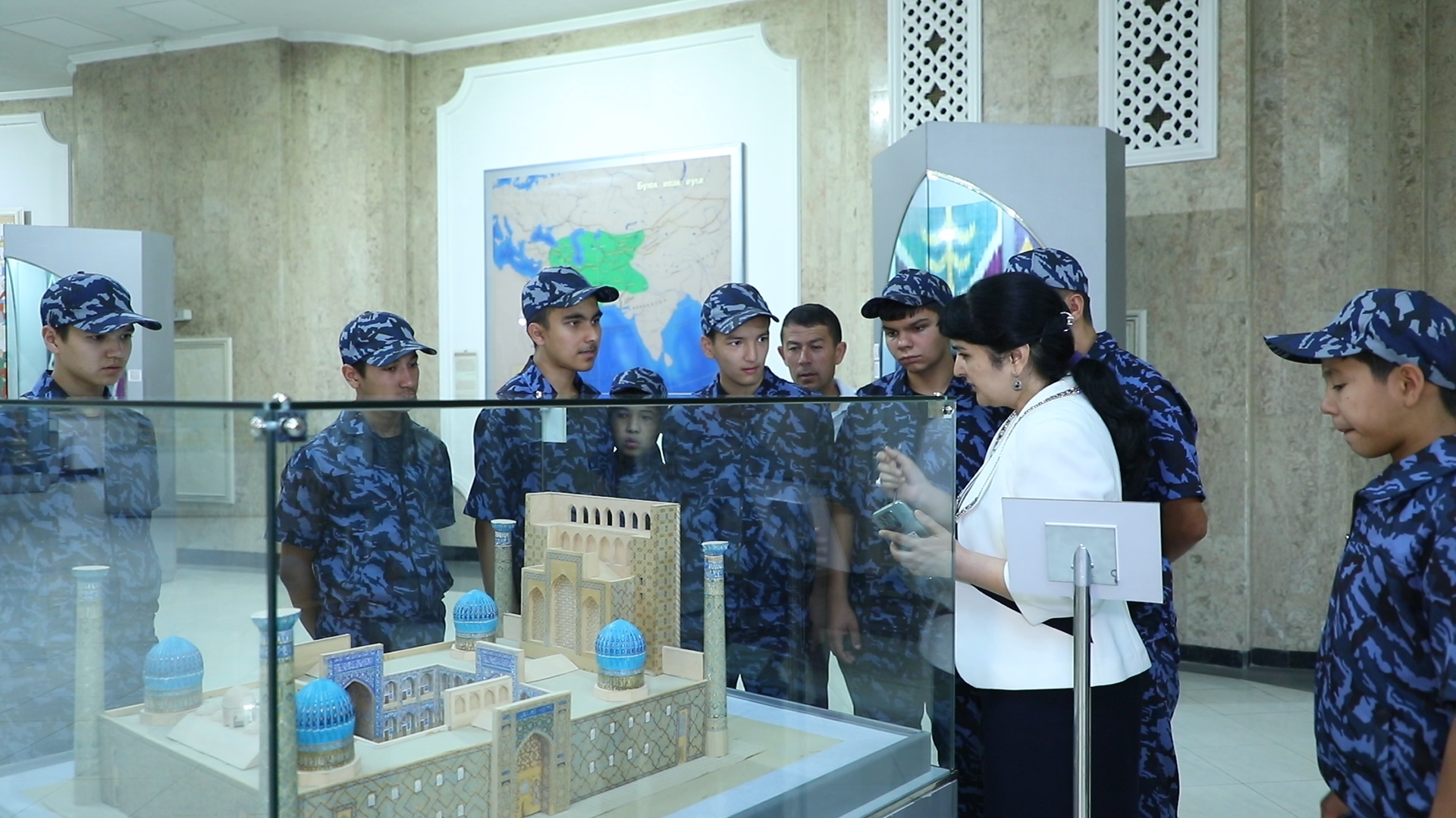 Насыщенная программа дня на этом не закончилась: дальше молодые люди отправились в Государственный музей истории Темуридов для ознакомления с представленной экспозицией. Экскурсовод рассказал детям об истории Средней Азии в период правления Амира Темура и других представителей основанной им династии. Данный музей – не просто хранилище экспонатов, имеющих огромную историческую ценность, но и центр научной мысли и просветительской работы, а также уникальный архитектурный объект в лучших традициях восточного зодчества. Слушателям специальных курсов этот день подарил не только расширение кругозора, но и заряд положительных эмоций.
