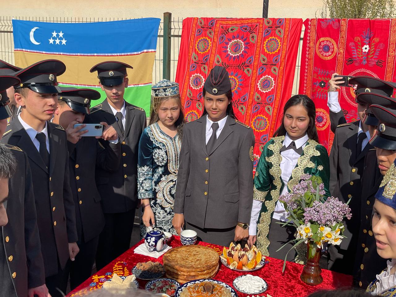 Праздник весеннего равноденствия символизирует обновление природы и человека, очищение душ и начало новой жизни. Это праздник весны. Наступают теплые дни, прилетают птицы, начинают цвести деревья, пробуждается земля. Наш народ готовится к Наврузу задолго до его прихода и празднует его в общей сложности 15-20 дней. Праздничные мероприятия, посвященные празднику весны Навруз, прошли и в Ташкентском академическом лицее №1 МВД Республики Узбекистан. В уютном внутреннем дворике были накрыты праздничные столы, где изобиловали традиционные весенние блюда - кук самса, чучвара, катлама с луком, гуль ханум, жидкая халва – холвайтар, пирожки с зеленью, традиционная шурпа и плов. В этот день лицеисты подготовили яркую концертную программу. Участники концертной программы в красочных национальных костюмах, сменяя друг друга, воссоздали на сцене атмосферу праздника весеннего равноденствия. Выступления учащихся лицея понравились всем присутствующим.