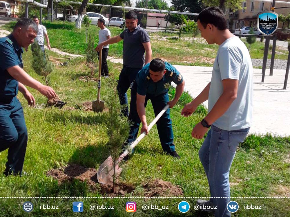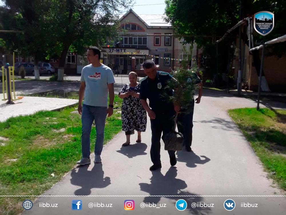 23 апреля текущего года сотрудники группы обеспечения карантинных мероприятий УООП ГУВД города Ташкента провели в махалле «Тирсакобод» Чиланзарского района мероприятие по высадке саженцев деревьев и других рассад. В данном мероприятии приняли участие представитель хокимията района Ильхом Мамараимов, председатель органов самоуправления Мумин Эгамбердиев, инспектор профилактики данной махалли капитан Абзал Хамдамов. Было высажено 30 саженцев фруктовых деревьев, 25 саженцев арчи, 400 рассад различных цветов и 200 кустов райхона. Работы, связанные с благоустройством территории данной махалли, продолжаются.