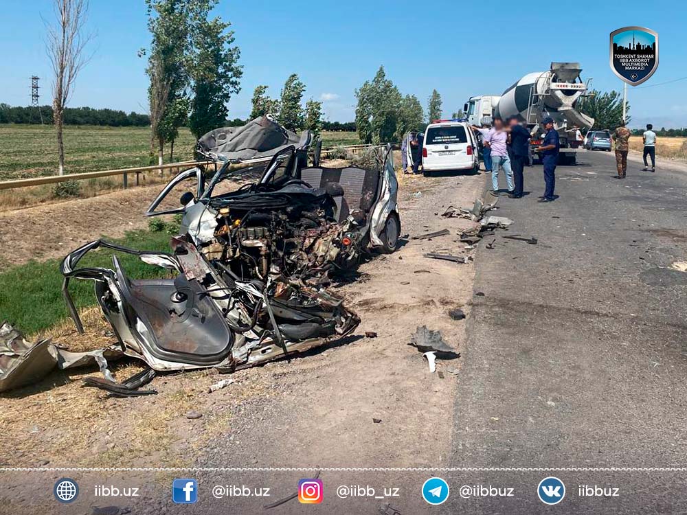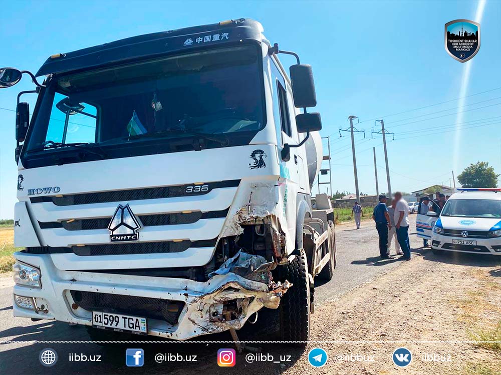 29 июля 2022 года примерно в 13:00 часов на улице Истиклол в Бектемирском районе произошло столкновение двух транспортных средств: легкового автомобиля марки «Matiz» (госномер 01 P 419 DB), находящегося под управлением Ш.Х. 2002 года рождения, и грузового автомобиля (бетономешалки) марки «Howo» (госномер 01 599 TGA), которым управлял Д.Д. 1992 года рождения. Предварительная причина ДТП: водитель «Matiz» существенно превысил скоростной режим, потерял управление транспортным средством, выехал на встречную полосу движения и столкнулся с грузовым транспортом.