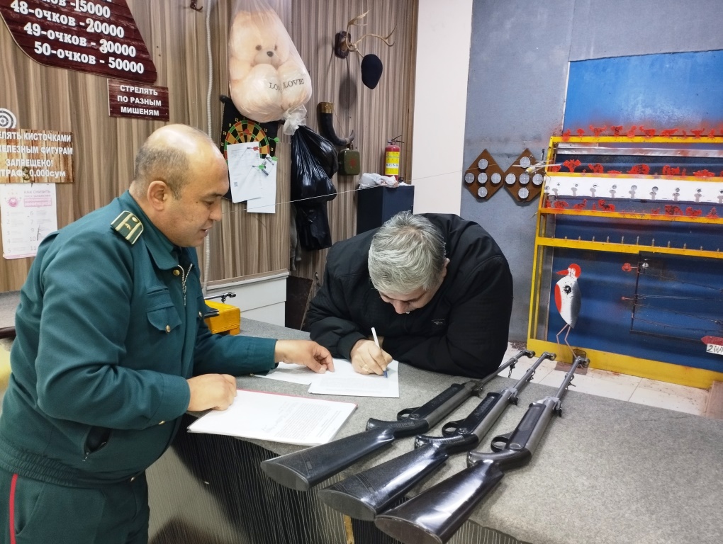 31 мая 2022 года был принят Закон Республики Узбекистан «О внесении изменений и дополнений в некоторые законодательные акты Республики Узбекистан в связи с совершенствованием законодательства об оружии». Были установлены строгие предписания, предусмотрены последствия за их несоблюдение. С начала сентября текущего года сотрудники ГУВД города Ташкента проводят разъяснительную работу среди населения. В частности, состоялось мероприятие, в ходе которого гражданам, а также юридическим лицам - владельцам пневматических тиров, функционирующих в парках и торговых центрах, разъяснили порядок получения лицензии в ОВД для занятия данной деятельностью. Было также подчеркнуто, что юридические и физические лица должны до 1 декабря 2022 года обратиться в районный отдел внутренних дел и зарегистрировать имеющееся у них пневматическое оружие. Владельцев письменно предупредили о последствиях административной и уголовной ответственности.