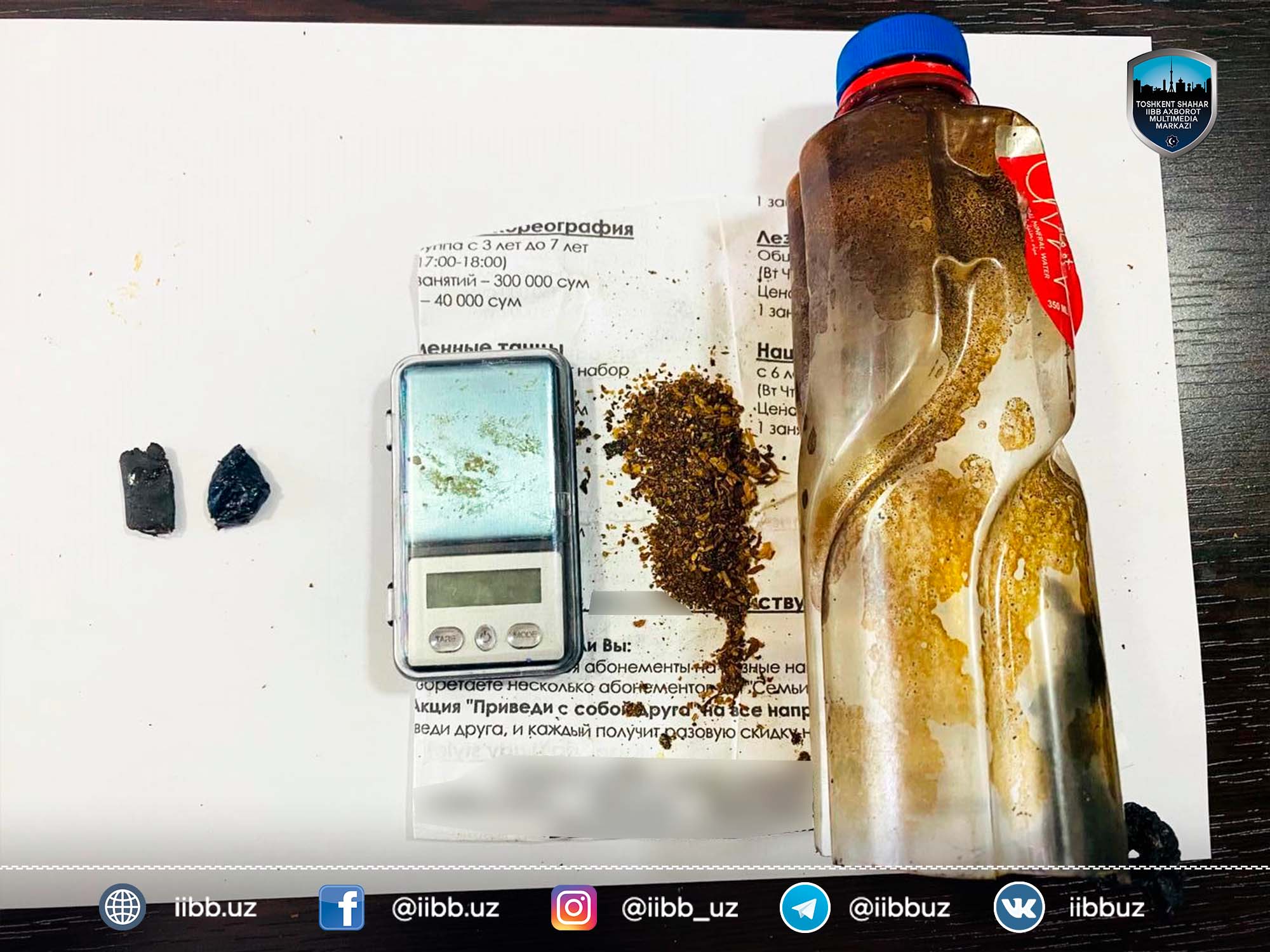 Также при проведении оперативно-розыскных мероприятий был задержан 32-летний Элёрбек А. У него при личном досмотре в качестве вещественного доказательства было обнаружено и изъято наркотическое средство «гашиш», пластиковая бутылка и электронные весы. В отношении него возбуждено уголовное дело по статье 276 Уголовного кодекса Республики Узбекистан.