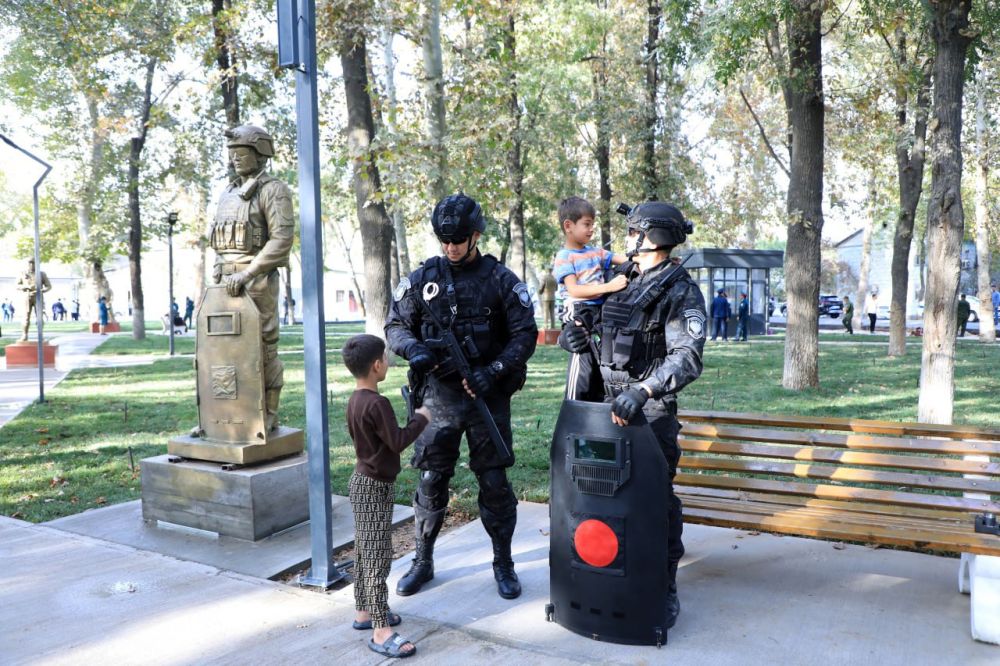 На территории парка также созданы книжная станция, место для чтения, "Чайхана ветеранов" и мемориальный комплекс, посвященный сотрудникам, погибшим при исполнении служебных обязанностей. Участники визита возложили венок к подножию памятника, выразив глубокое уважение памяти отважных сынов.