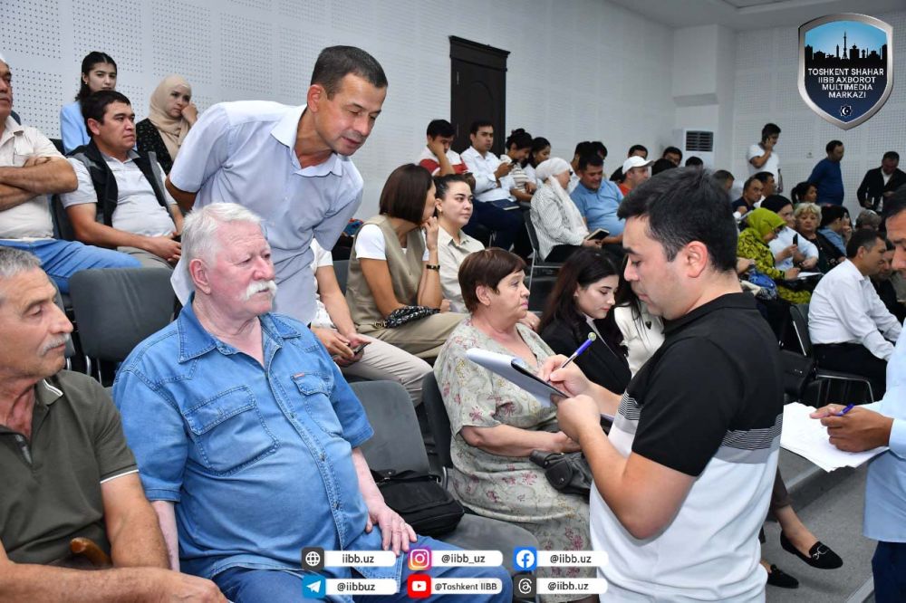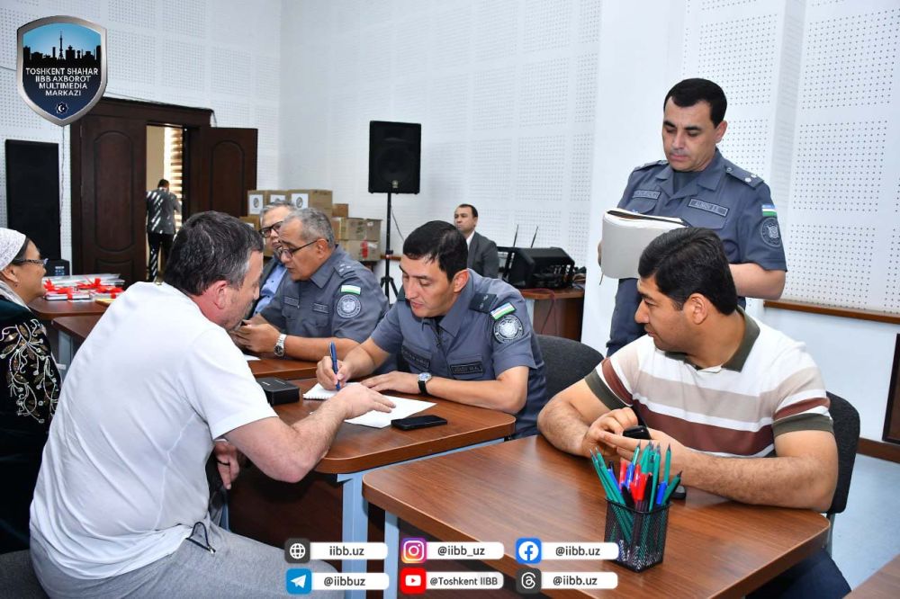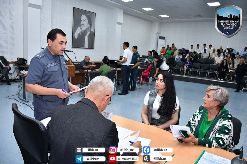 ГУВД г. Ташкента совместно с Народными приемными проводит выездные приемные, чтобы узнать о проблемах населения и выяснить, в какой социальной и духовно-бытовой помощи они нуждаются. Процветание нашей столицы, благополучие и комфорт жизни граждан зависят от их обращений, проблем и предложений. Возникшие недостатки устраняются путем взаимного сотрудничества. На днях руководитель 3-го сектора – начальник ГУВД г. Ташкента генерал-майор Азиз Ташпулатов провел выездной прием в МСГ «Конституция» Яккасарайского района. В его работе приняли участие начальник Народной приемной г. Ташкента Тохир Муллажонов, хоким Яккасарайского района Нилуфар Аллаберганова, а также руководители секторов района и представители ответственных организаций.
