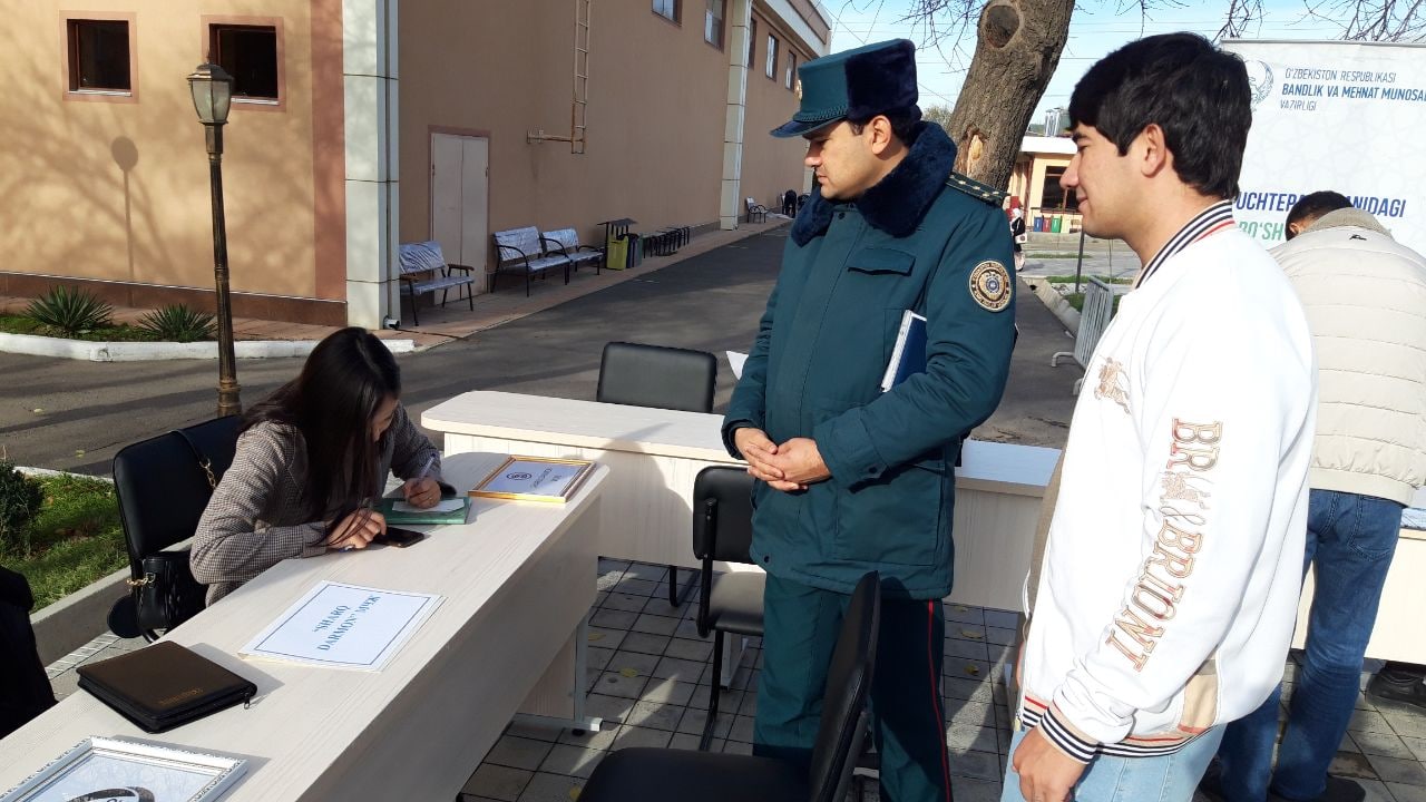 Сотрудниками службы пробации ГУВД города Ташкента оказывается практическая помощь лицам, освобождённым из учреждений исполнения наказания, в их социальной адаптации. Так, недавно в целях решения вопросов трудоустройства поднадзорных, ответственными сотрудниками УКД ОВД Юнусабадского района, совместно с представителями Центра содействия занятости населения была организована ярмарка вакансий. В мероприятии приняли участие свыше 15 человек, состоящих на учёте, а также временно безработные граждане, проживающие на территории района. Вакансии предлагались с учётом места проживания, специальности либо квалификации лица, нуждающегося в трудоустройстве. В ходе ярмарки 8 человек получили направление на работу по специальности, из них 4 подписали трудовые договоры.