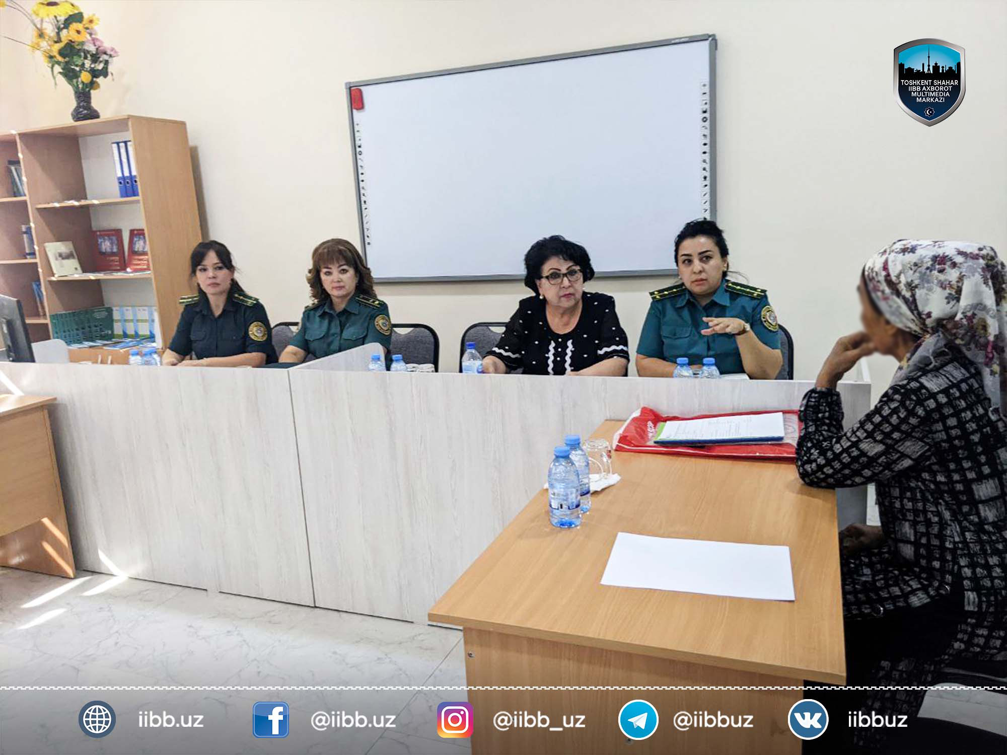 Старшие инспектора по вопросам женщин органов внутренних дел в тесном сотрудничестве с заинтересованными организациями и ведомствами оказывают социально-правовую помощь женщинам, содействуют с трудоустройством и созданием необходимых условий. Так, недавно, старшие инспектора по вопросам женщин УКД ОВД Юнусабадского района совместно с заместителем хокима района организовали встречу с местными жительницами. В ходе выездного приёма женщины обратились к ответственным лицам со своими обращениями, а также вопросами, которые их волнуют. К примеру, жительница махалли “Туркистон”, вернувшаяся из мест лишения свободы просила помочь с приобретением швейной машинки для того, чтобы начать предпринимательскую деятельность. Гулбахор, проживающая в махалле “Богиэрам”, состоит в списке «женской тетради». Она поделилась, что хочет открыть мини-цех кондитерских изделий и обратилась за содействием в получении субсидии для приобретения необходимой техники. Ещё одна жительница данной махалли Нодира просила выделить материальную помощь для восстановления здоровья. Ряд обращений были положительно разрешены на месте. По ряду обращений заявителям даны юридические консультации.
