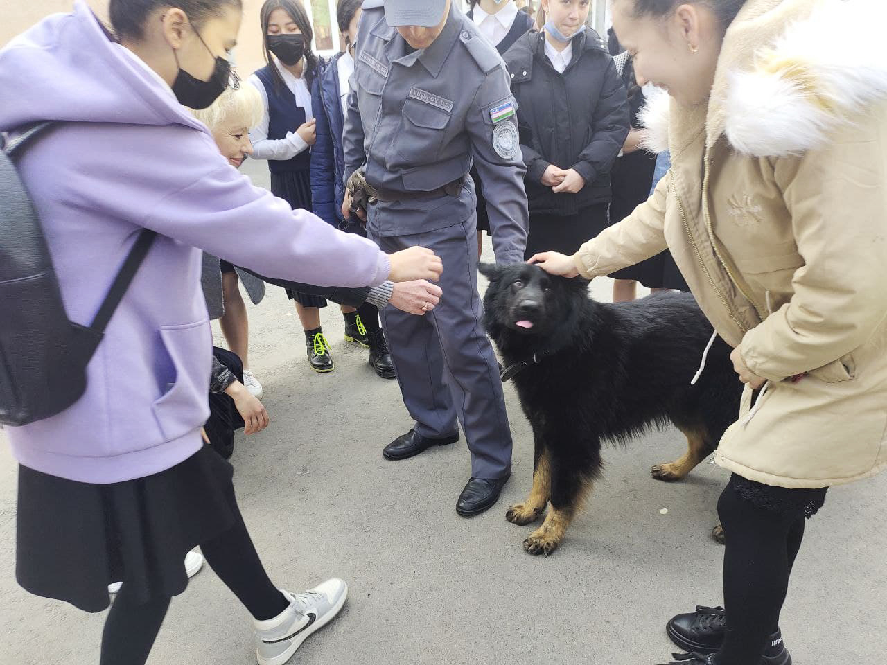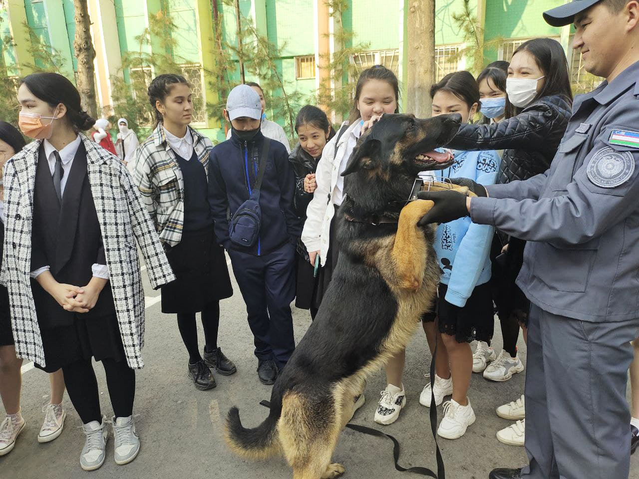 Сотрудники кинологической службы ГУВД Ташкента посетили школу №166