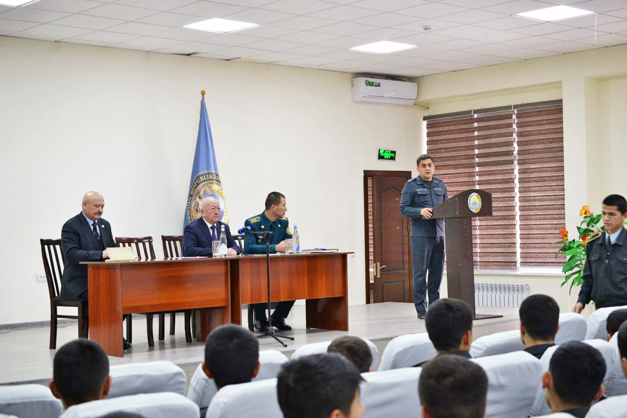 В Ташкентском академическом лицее №1 МВД прошла встреча с участием ветеранов, много лет прослуживших в сфере, квалифицированных сотрудников ГУВД Ташкента с многолетним опытом работы. В мероприятии приняли участие советник начальник ГУВД столиц ы полковник в отставке М. Каримов, ответственные сотрудники службы духовно-просветительской работы и кадрового обеспечения, а также члены Совета ветеранов.