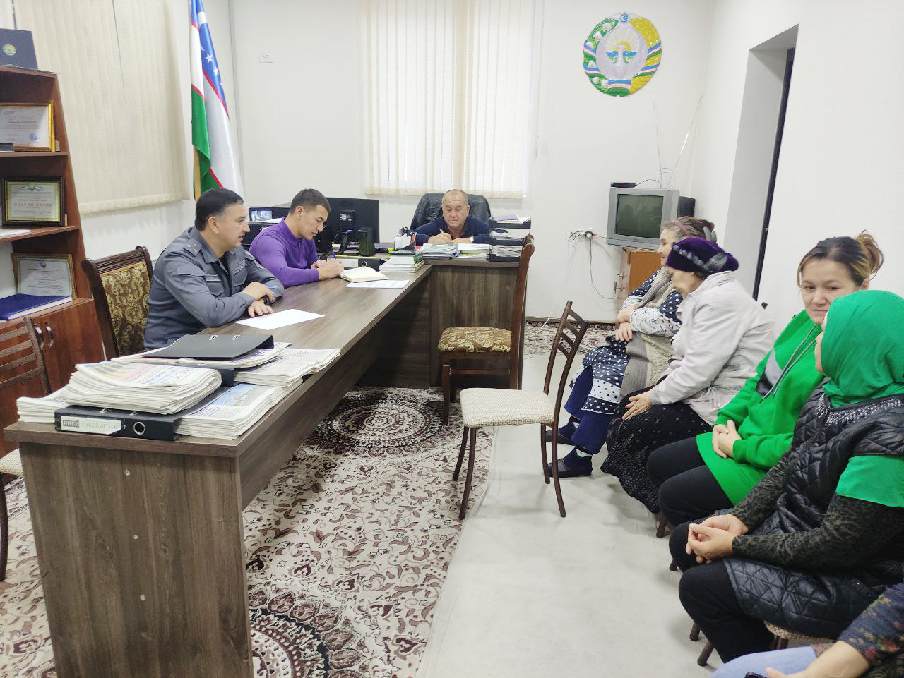 Недавно начальник УКД ОВД Юнусабадского района полковник Абдумажид Шермухамедов совместно с заинтересованными ведомствами и организациями провёл открытый диалог с жителями нескольких махаллей. К примеру, в ходе выездного приёма в махалле «Жомий», к начальнику районного управления поступило свыше 14 обращений и заявлений. Из них 2 обращения были решены на месте, по 6 – даны правовые разъяснения, ещё по 6 заявлениям установлены сроки рассмотрения в соответствии законодательством. Следующим пунктом назначения стала махалля «Гайратий». В ходе встречи поступило 5 обращений, 2 обращения были положительно решены на месте, одному заявителю даны правовые разъяснения. Ещё один приём прошёл в махалле «Биллур», где были подняты наболевшие вопросы жителей. 3 из 6 обращений нашло своё решение на месте, проведен мониторинг исполнения остальных 3 обращения, требующих рассмотрения. Аналогичные выездные приёмы граждан с участием начальника УКД ОВД района состоялись также в махаллях «Анорзор» и «Адолат». Мероприятие посетили свыше 35 граждан, которые обращались по вопросам трудоустройства, получения материальной помощи, льготного кредита и др. Больше половины обращений были решены на месте, остальные перенаправлены в соответствующие государственные органы для решения.