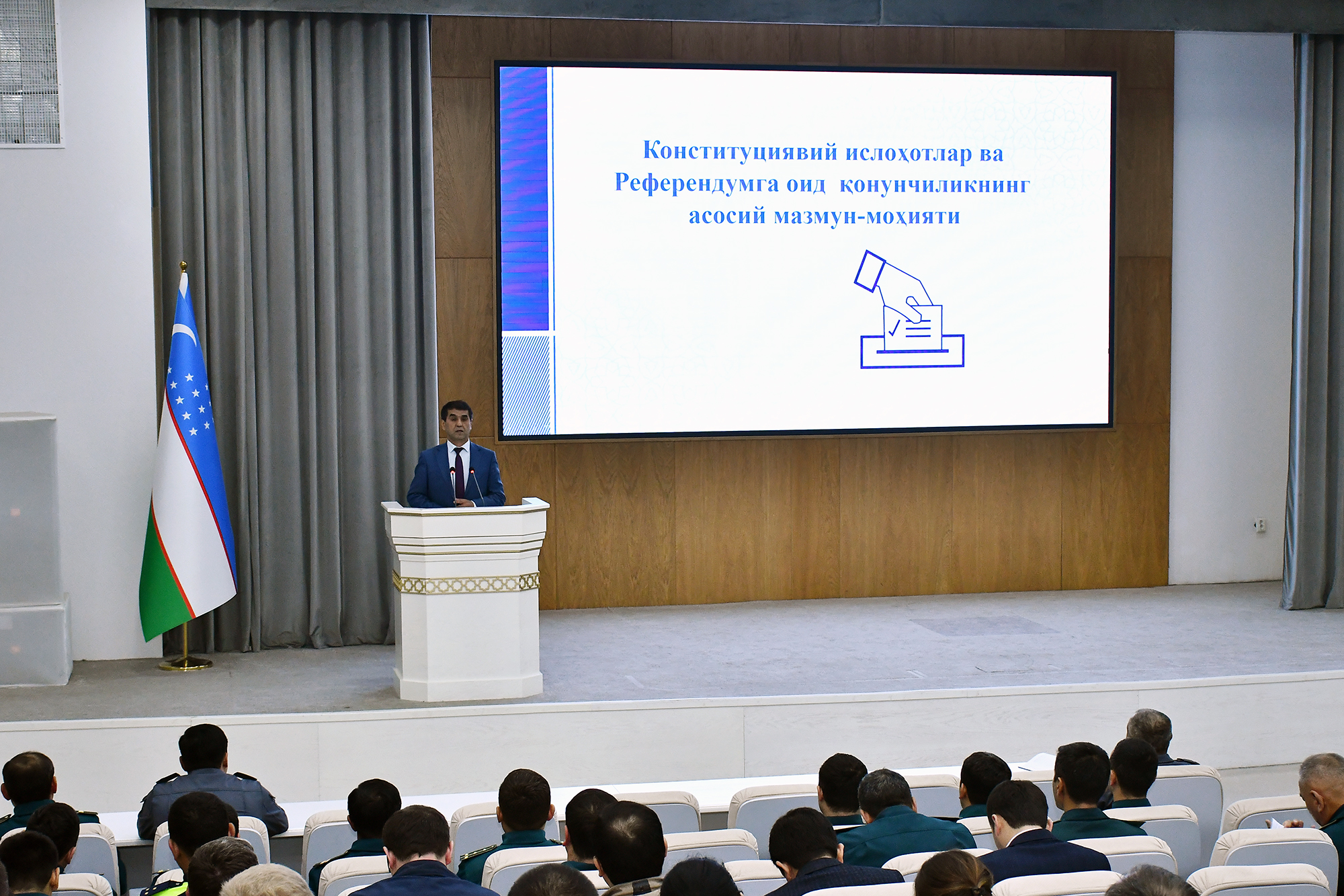 Среди личного состава ГУВД города Ташкента было проведено духовно-просветительское мероприятие на тему «Единственный источник и автор Конституции - народ». Доклад был подготовлен представителем Ташкентского государственного юридического университета доктором юридических наук профессором Шухратом Файзиевым.