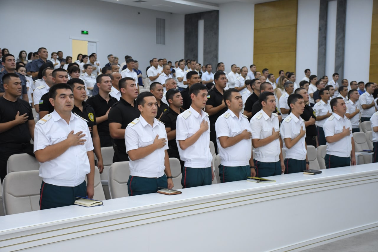 Помимо этого личный состав ГУВД города Ташкента просмотрел сюжет из информационной передачи «Тахлилнома». В заключительной части мероприятия был зачитан приказ о присвоении очередных званий некоторым сотрудникам. Заместитель начальника ГУВД города Ташкента полковник Алиахмед Чориев торжественно вручил им погоны.