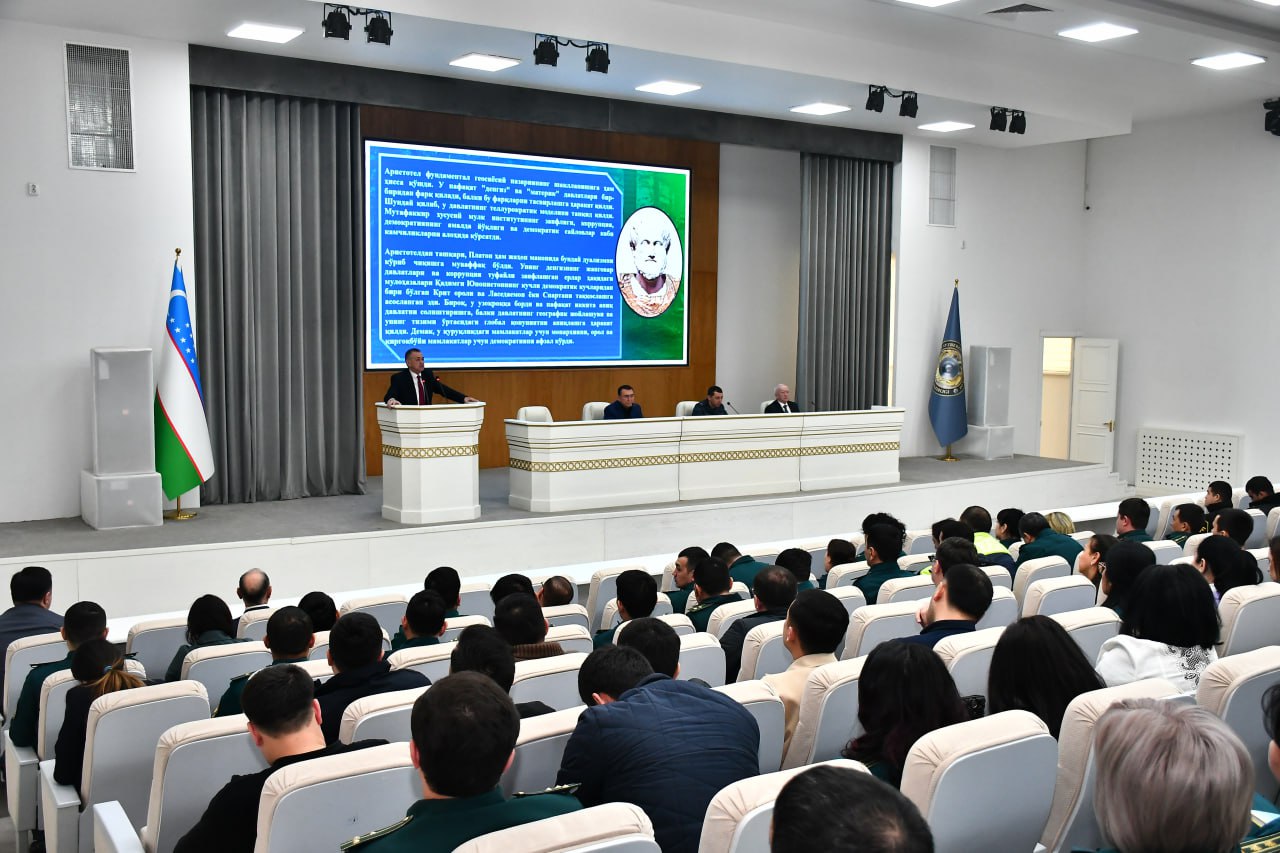 Среди личного состава ГУВД города Ташкента состоялось духовно-просветительское мероприятие, посвященное теме «Геополитическая обстановка в мире и её влияние на Узбекистан». Доклад был подготовлен представителем Ташкентского филиала Российского экономического университета имени Г.В.Плеханова профессором Шухратом Гаибназаровым. В своем выступлении лектор отметил, что Узбекистан обладает стратегическими возможностями для сохранения и укрепления своих позиций в мировом сообществе. Узбекистан проводит взвешенную политику, основанную на доверии и уважении, взаимовыгодном сотрудничестве, укрепляет многосторонние связи. В продолжение мероприятия слово было предоставлено полковнику в отставке Муроджону Каримову, который представил личному составу советника начальника Службы по вопросам духовно-просветительской работы и кадрового обеспечения ГУВД города Ташкента полковника в отставке Абдунаби Кабулова.