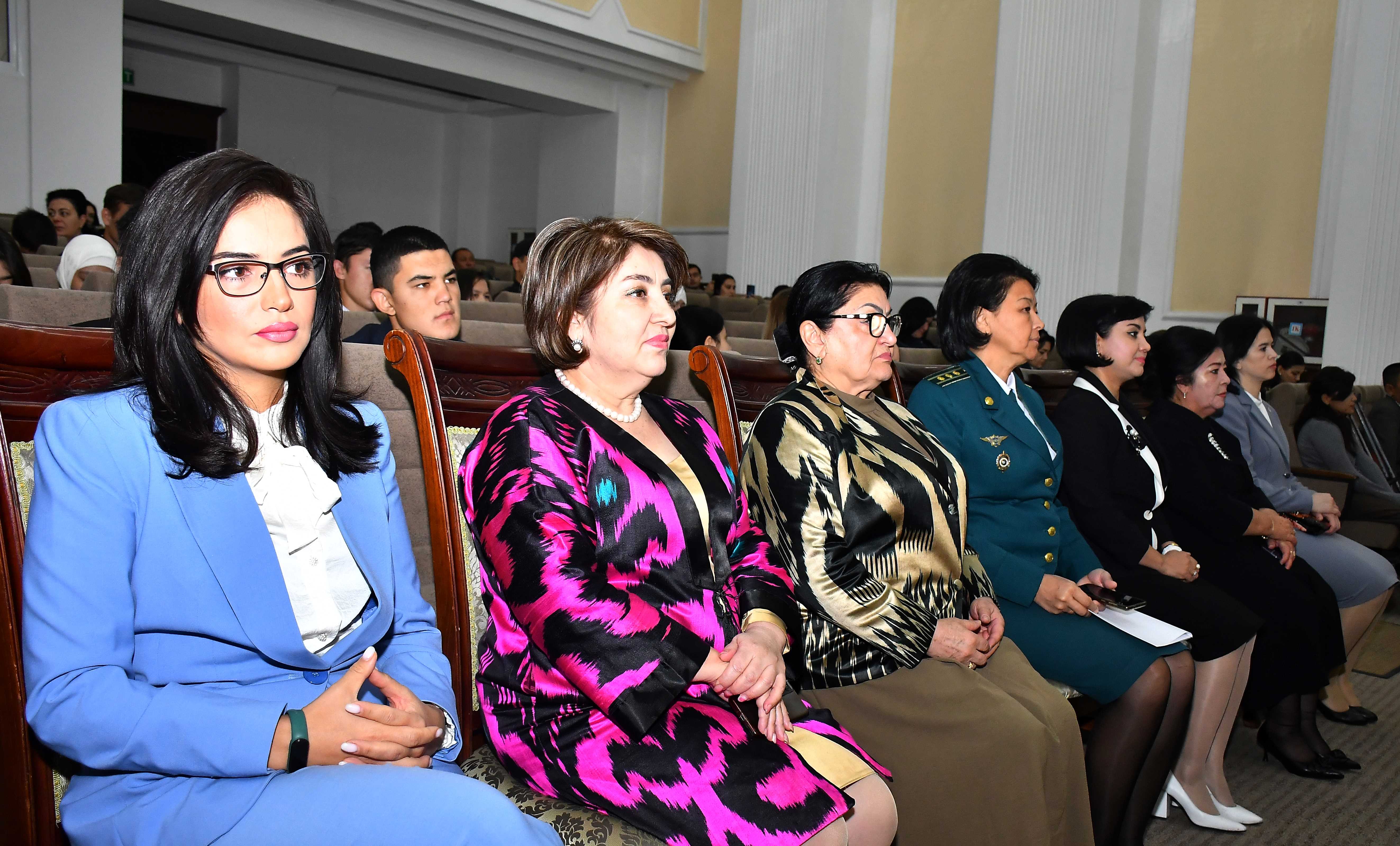 Недавно во Дворце культуры МВД республики состоялось торжественное мероприятие по случаю окончания второго этапа проекта «Я сильная женщина», инициированный ГУВД г. Ташкента. В мероприятии приняли участие руководство и ответственные сотрудники ГУВД города, старшие инспектора по вопросам женщин, участницы проекта. В качестве гостей были приглашены советник министра по развитию IT и коммуникаций по привлечению молодёжи и женщин в сферу ИТ Камола Сабирова, заместитель начальника Управления профилактики правонарушений МВД Узбекистана полковник Умида Абдуллаева, эксперт Республиканского центра духовности и просвещения доктор философских наук, профессор Джамиля Шермухамедова и другие.