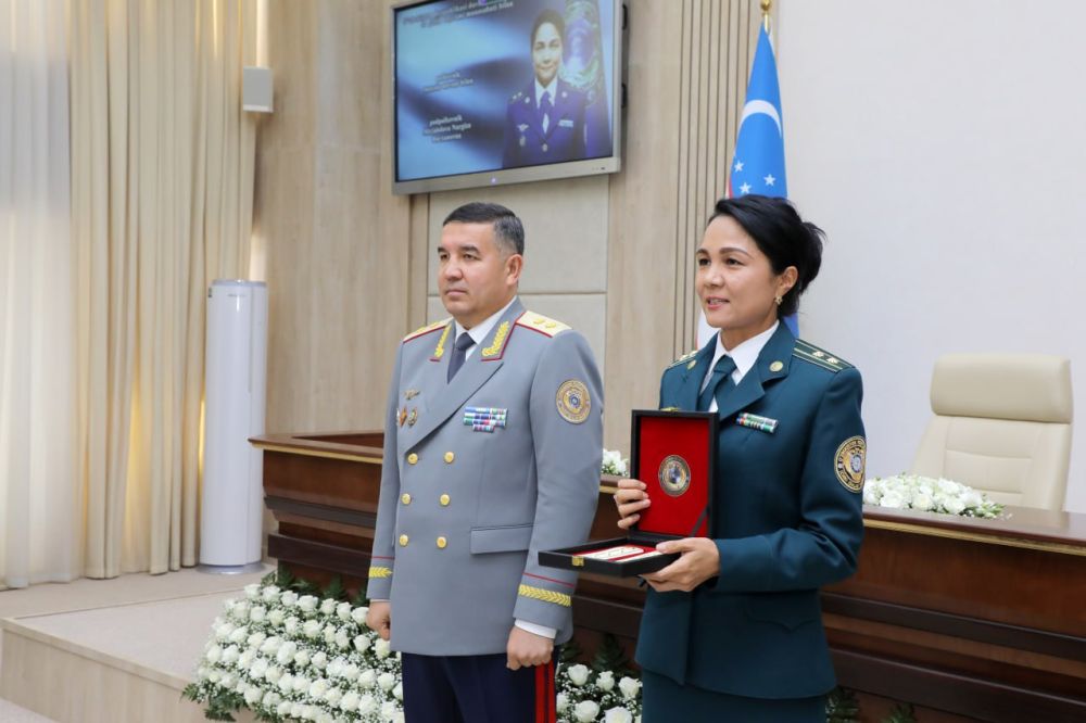 В ходе церемонии, согласно Указу Главы государства, были торжественно вручены высокие награды: орден "Дустлик" подполковнику Оксане Гордиенко, инспектору ГУВД города Ташкента; медаль "Жасорат" подполковнику Собитжону Якубову, оперуполномоченному УВД Андижанской области, медаль "Содик хизматлари учун" подполковнику Абдухалилу Носирову, начальнику ОВД Жандорского района Бухарской области, медаль "Шухрат" подполковнику Уткиру Наржигитову, старшему следователю ОВД Чиназского района Ташкентской области.