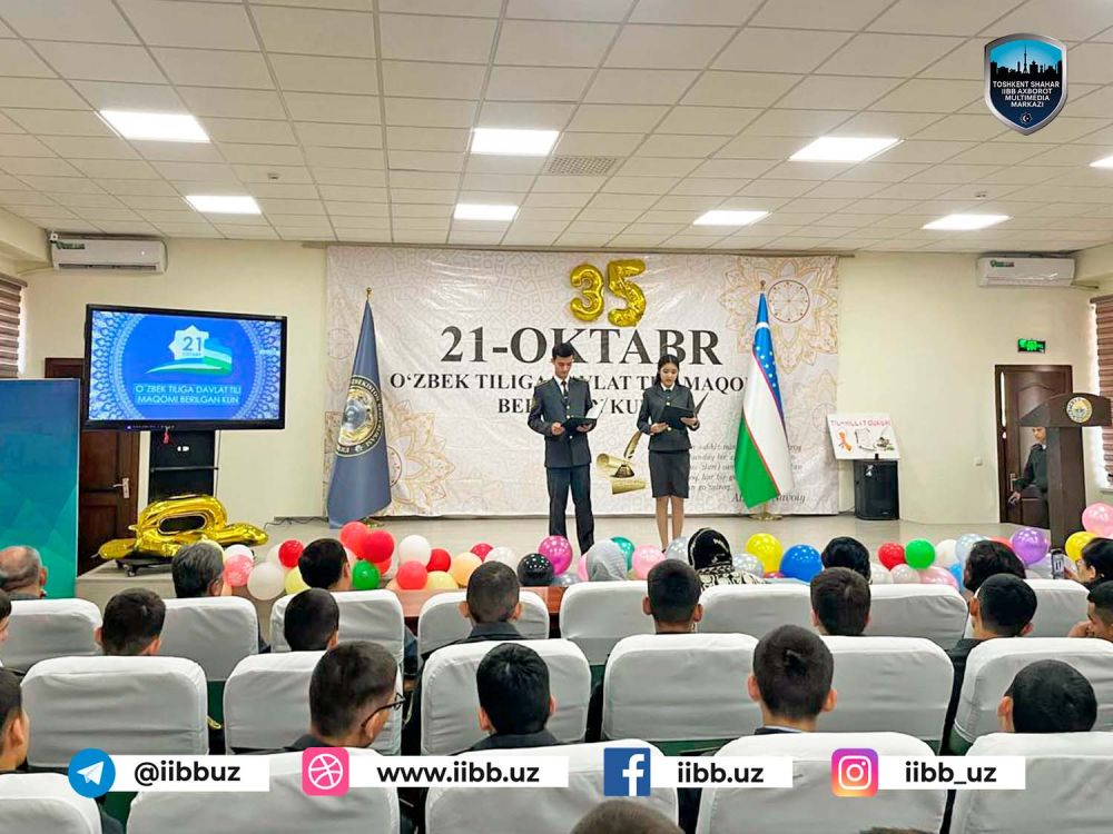 Среди личного состава ГУВД города Ташкента было проведено духовно-просветительское мероприятие, посвящённое теме «Узбекский язык – символ нации». Доклад был подготовлен представителем Ташкентского государственного университета узбекского языка и литературы имени Алишера Навои Абдумуродом Тилавовым. В своём выступлении он отметил, что узбекский язык дорог всем нашим гражданам, проживающим в нашей стране, и необходимо мобилизовать все наши силы и возможности для повышения его привлекательности. Ведь язык – это символ нашего самосознания, уважение к нему – это уважение к нашему народу, его уникальной культуре и истории.