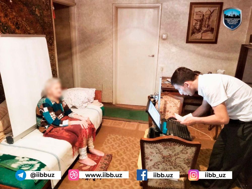 Родственникам лиц с ограниченными возможностями необходимо посетить ОМиОГ, написать заявление на обмен паспорта, предоставить паспорт, выданный ранее, а также подтвердить состояние пациента (справкой из медицинского учреждения, заключением лечащего врача либо актом махали, заверяющим факт того, что гражданин по состоянию здоровья не имеет возможности посетить ОМиОГ лично). Также необходимо оплатить государственную пошлину и оставить свои контактные данные. После этого сотрудники со специальной переносной станцией для сбора биометрических данных навестят человека с ограниченными возможностями в месте его проживания или лечения.