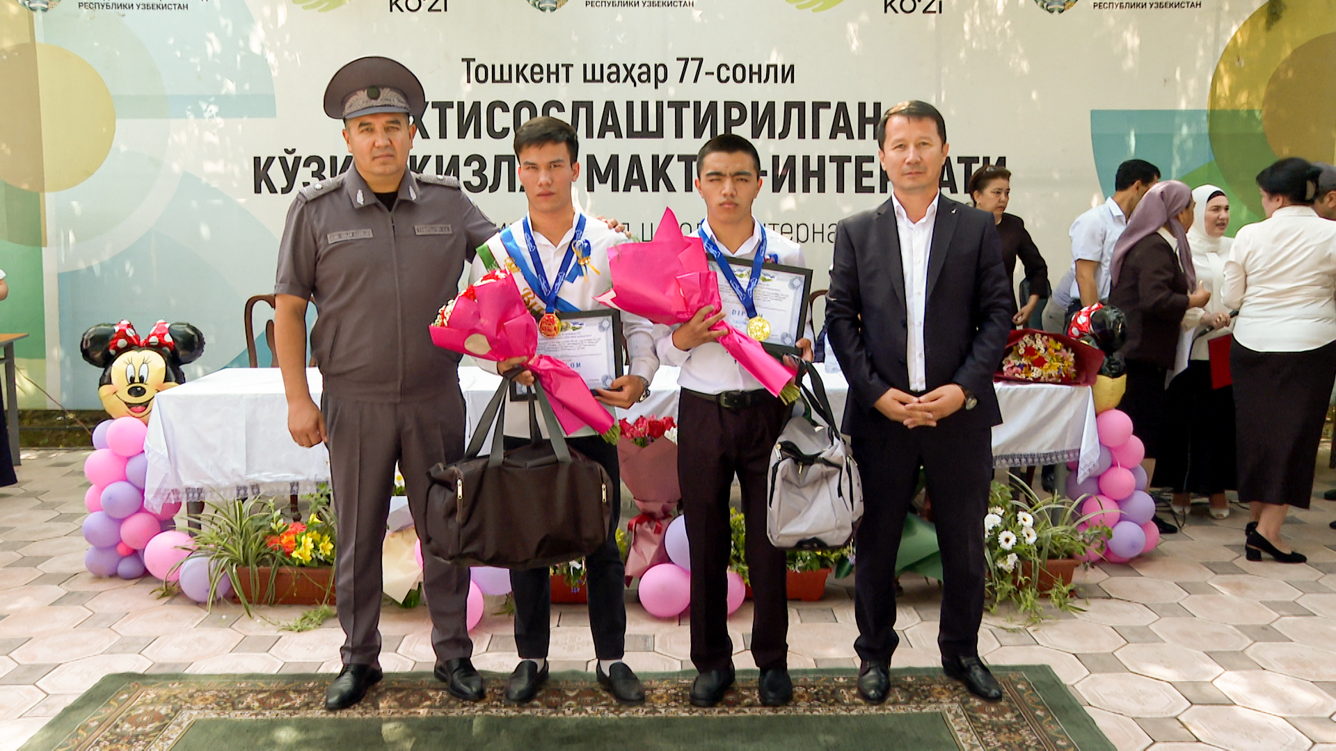 Особая, волнительная атмосфера царила с раннего утра в школах республики. Для выпускников прозвенел последний звонок, оповестив их об окончании школьного пути и начале нового этапа жизни. В торжественном мероприятии, состоявшемся в подшефной специализированной школе-интернат для незрячих детей № 77 “Нурли маскан” Яшнабадского района, приняли участие начальник ГУВД г. Ташкента генерал-майор А. Ташпулатов, ответственные сотрудники главного управления и УКД ОВД района. Обращаясь к выпускникам, генерал-майор А. Ташпулатов зачитал поздравление Президента Республики Узбекистан Ш.Мирзиёева, направленное им по случаю Последнего звонка и пожелал им больших успехов, быть всегда целеустремленными, инициативными, полными сил и энергии, осваивать современные, востребованные профессии. Он подчеркнул, что в нашей стране под руководством главы государства создаются все условия для проявления молодежью – строителями нового Узбекистана созидательного потенциала. В ходе мероприятия лучшим выпускникам, а также способным и талантливым детям – победителям многих конкурсов, спортивных состязаний были вручены почетные грамоты и памятные подарки.