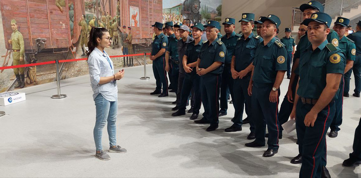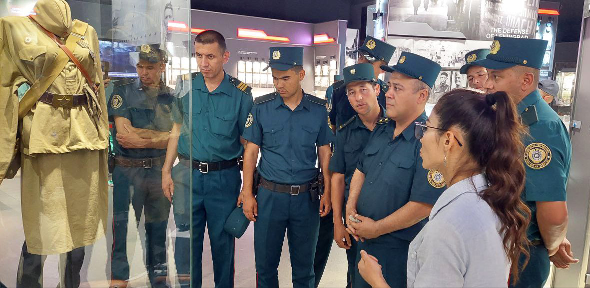 Вчера, 18 мая – в Международный день музея посетителями Парка Победы и Музея славы стали сотрудники строевых подразделений УООП ГУВД города Ташкента и подопечные Центра социально-правовой помощи несовершеннолетним ГУВД города. Экспозиции паркового комплекса рассказывают о вкладе узбекистанцев в победу над фашизмом, который они ковали на фронтах и в тылу. Посетители ознакомились с выставкой военной техники и вооружения того времени, развернутой под открытом небом. Стражи правопорядка и подопечные Центра в Музее славы увидели экспонаты, которые наглядно показывали, как их соотечественники сражались на передовой, сколько обездоленных людей и осиротевших детей приняли граждане нашей республики, проявив сердечность и гостеприимство, присущие нашему народу.