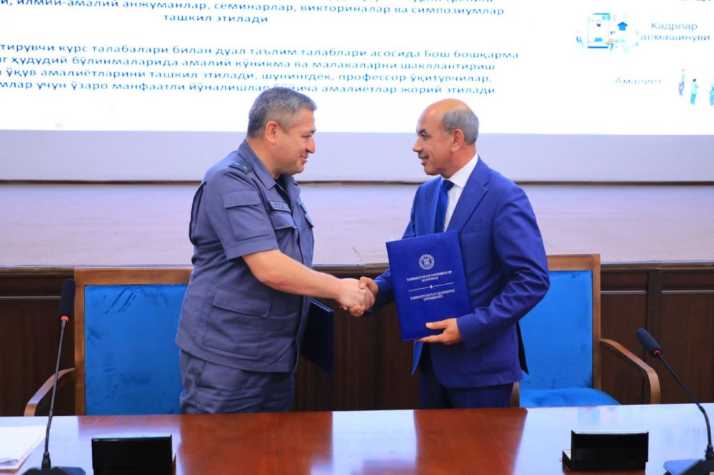 Подписанный стратегический документ ознаменовал начало нового этапа взаимодействия двух крупных учреждений – Главного управления внутренних дел города Ташкента и Ташкентского государственного экономического университета.