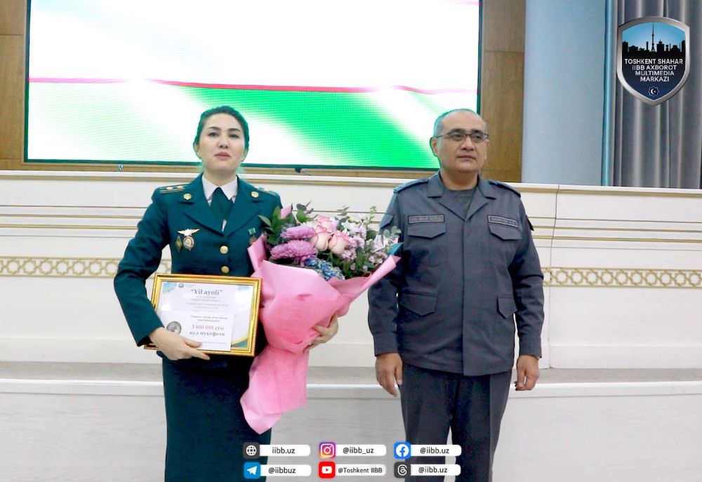 В завершение мероприятия состоялась церемония награждения сотрудников занявших призовые места в конкурсе «Энг яхши китобхон», а также победительницу республиканского конкурса “Йилнинг энг ватанпарвар аёли” - заместителя начальника УПП ГУВД г.Ташкента подполковника Ширин Норматову.