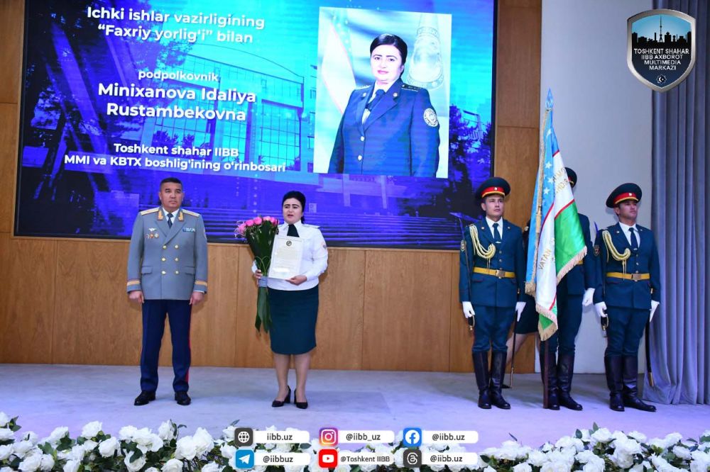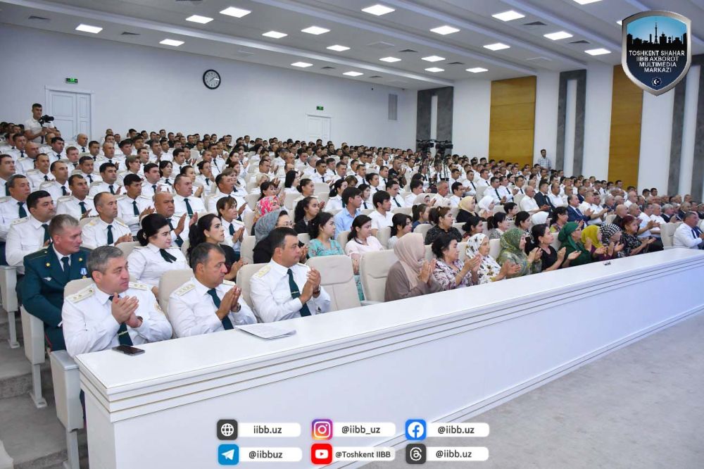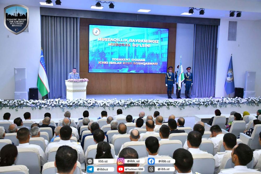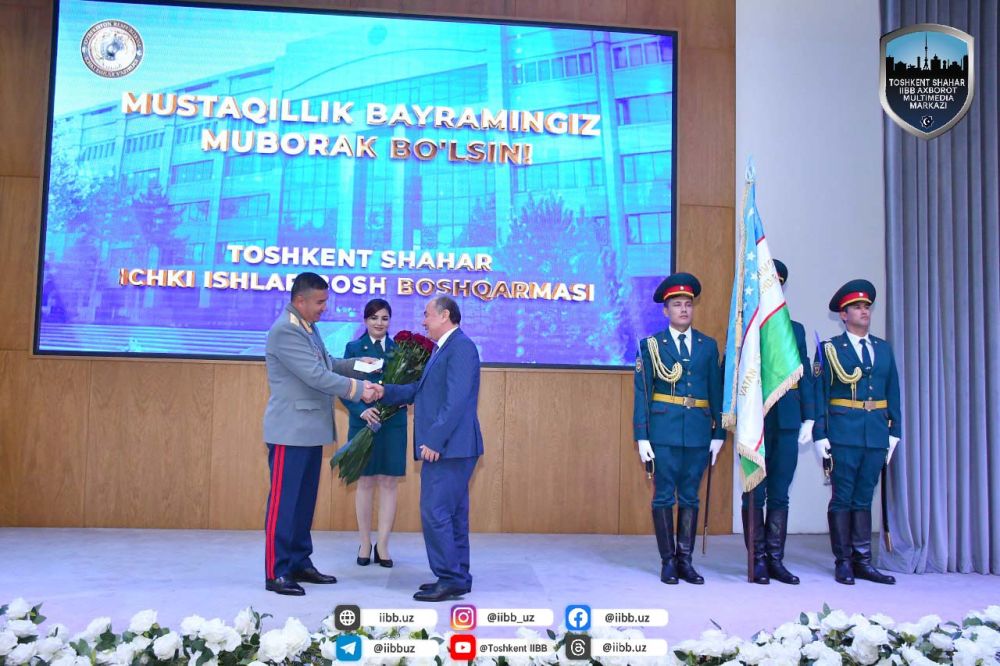искренне поздравил всех сотрудников, ветеранов, членов семей сотрудников, героически погибших при исполнении служебного долга, и весь наш народ с 33-й годовщиной нашей Независимости. Он отметил, что за миром и спокойствием нашей страны стоит труд многих стражей правопорядка в лице сотрудников правоохранительных органов, и тот факт, что сотрудники, несущие службу днём и ночью, со всей ответственностью подходят к своей службе, приносит свои плоды. Всё это было особо отмечено и Президентом: два сотрудника ГУВД г. Ташкента были представлены к государственной награде. Также среди чемпионов, поднявших флаг нашей страны и завоевавших золотую медаль на 33-х летних Олимпийских играх, особого упоминания заслуживает сотрудник столичного ГУВД Абдумалик Халаков.