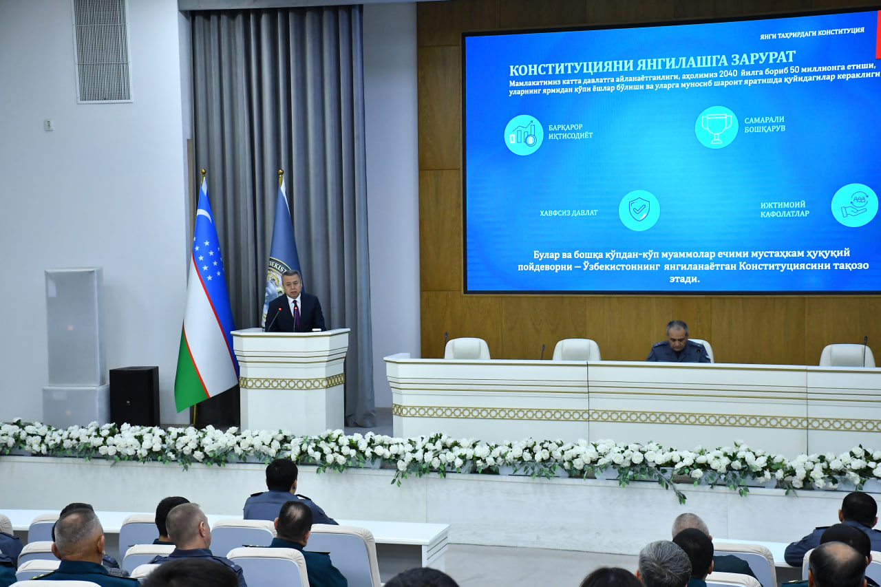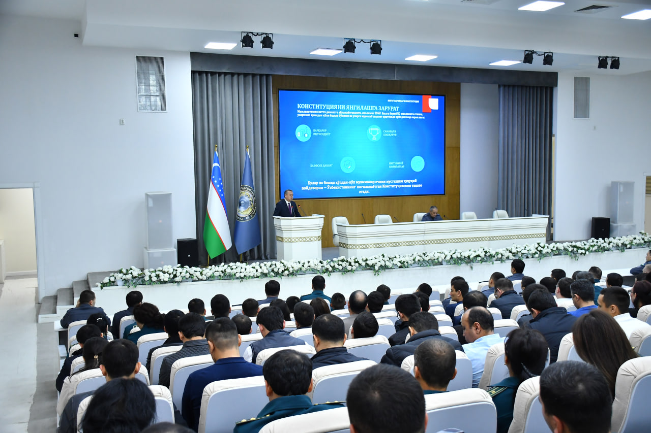 Среди личного состава ГУВД города Ташкента было проведено духовно-просветительское мероприятие, посвящённое теме «С народной конституцией к подлинно народному государству». Доклад был подготовлен представителем Ташкентского государственного юридического университета доктором юридических наук Олимжоном Нарзуллаевым. В своём выступлении он отметил, что в обновленной Конституции Узбекистан провозглашается суверенным, демократическим, правовым, социальным и светским государством с республиканской формой правления, а Государство служит интересам народа и выражает его волю.