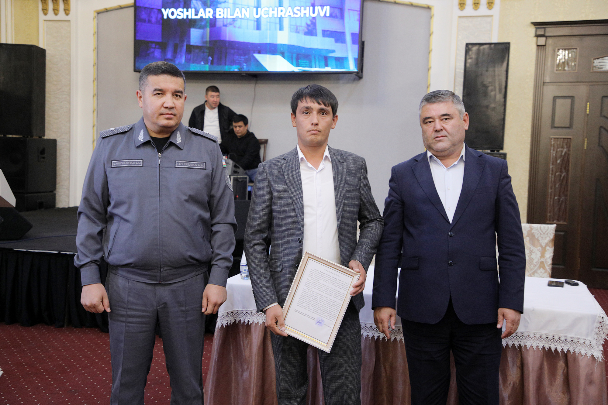 Руководитель 3-го сектора города Ташкента по социально-экономическому развитию, начальник столичного ГУВД генерал-майор Азиз Ташпулатов уделяет большое внимание молодёжи. Недавно состоялась очередная встреча с юношами и девушками, проживающими в Бектемирском районе столицы. Заместители начальника ГУВД, хоким района, начальник УКД ОВД района, представители районного отдела по делам обороны, руководители секторов по социально-экономическому развитию, а также свыше 150 граждан собрались вместе, чтобы в духе взаимного доверия и искренности обменяться мнениями по волнующим их вопросам. Начальник ГУВД столицы рассказал о проводимой в стране работе по поддержке молодёжи, превентивных мерах, направленных на предотвращение преступлений и правонарушений. В ходе встречи 10 молодым людям, состоявшим в списках «Молодёжной тетради» вручили сертификаты на выделение субсидий. Кроме того, на мероприятии торжественно поздравили спортсменов, достойно выступивших и завоевавших призовые места на международных состязаниях по муайтай, таэквондо, чемпионате Узбекистана по рукопашному бою. Призёрам соревнований были переданы памятные подарки. Также в ходе выездного приёма были выслушаны обращения 35 молодых людей. Все обращения и их исполнение взяты на контроль начальником ГУВД города Ташкента и районным хокимом, ответственным руководителям установлен срок принятия решения по конкретным обращениям. Аналогичные встречи проходят во всех районах города.