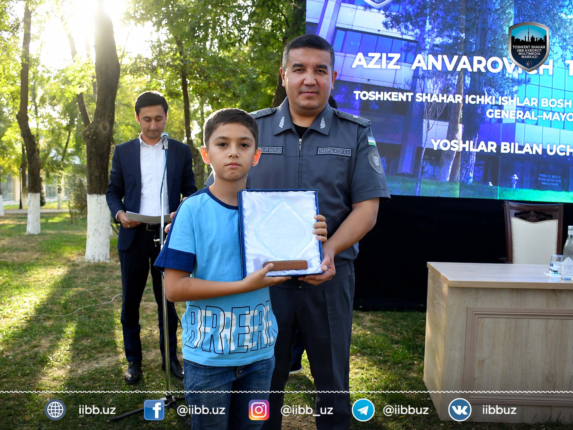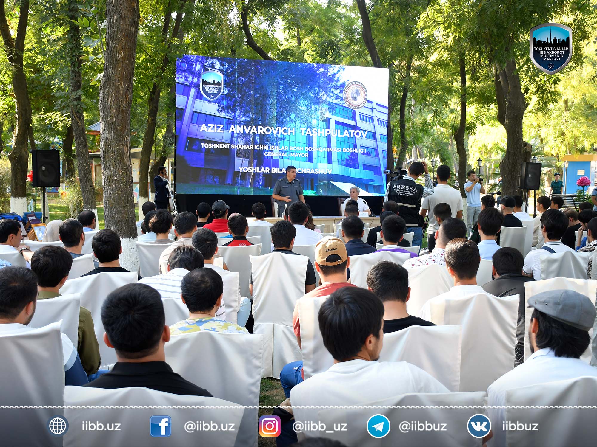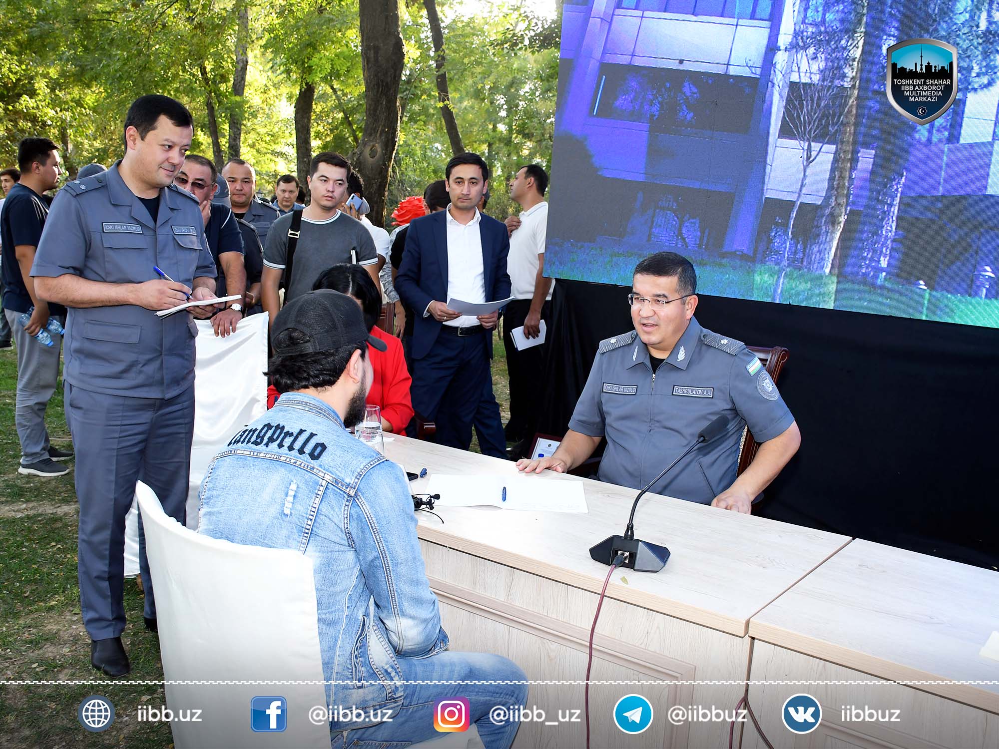Недавно в Экопарке «Сеул» Учтепинского района столицы состоялась встреча начальника ГУВД города Ташкента генерал-майора Азиза Ташпулатова с молодёжью. В мероприятии приняли участие хоким района Фарход Абдуллаев и начальник УКД ОВД полковник Дилмурод Мирсодиков, руководители секторов по социально-экономическому развитию района, представители Отдела по делам обороны Учтепинского района, а также свыше 200 юношей и девушек. Присутствовали ребята, состоящие на учетё службы пробации, те, кто нуждается в трудоустройстве или мечтает заняться предпринимательством. Каждый мог задать вопрос начальнику ГУВД столицы. Встреча с начальником правоохранительного ведомства столицы проходила в формате непринуждённой, искренней беседы. Она показала, что руководство и личный состав Главного управления работают не только в направлении предупреждения преступлений среди подростков и молодёжи, проводят беседы с каждым трудновоспитуемым ребёнком, но и помогают в непростых ситуациях, с которыми сталкиваются дети, ориентируя их на подлинные человеческие ценности и правовое поведение. Участники задавали вопросы, выдвигали предложения, делились мнением и взглядами, обращались с просьбами о помощи и содействии. Каждое обращение было взято на контроль руководства ГУВД столицы. Ответственным лицам были даны указания по скорейшему принятию мер для решения озвученных проблем. Благодаря участию в мероприятии представителей различных служб, заинтересованных ведомств и организаций, многие вопросы были решены на месте. В ходе встречи 20 юношам и девушкам, внесённым в списки «молодёжной тетради» была оказана помощь в оплате контракта в вуз, вручили сертификаты для прохождения срочной военной службы и для обучения вождению. К примеру, жительнице махалли “Дийдор” 18-летней Рухшоне И., внесённой в список «молодёжной тетради» был выделен кредит, также 27-летней Сайёре С. проживающей в махалле “Зарафшон” вручили сертификат для обучения вождению. Кроме того, в торжественной обстановке 12 представителям молодёжи, занявшим призовые места в махаллинском этапе спортивных состязаний «Олимпиада пяти инициатив» были вручены сертификаты и памятные подарки. Также, в ходе мероприятия состоялся выездной суд. В ходе судебного разбирательства 5 человек, находящихся под надзором отдела пробации УКД ОВД Учтепинского района, в соответствии со ст. 73 Уголовного кодекса были условно-досрочно освобождены от отбывания наказания. Аналогичные встречи проходят во всех районах города.