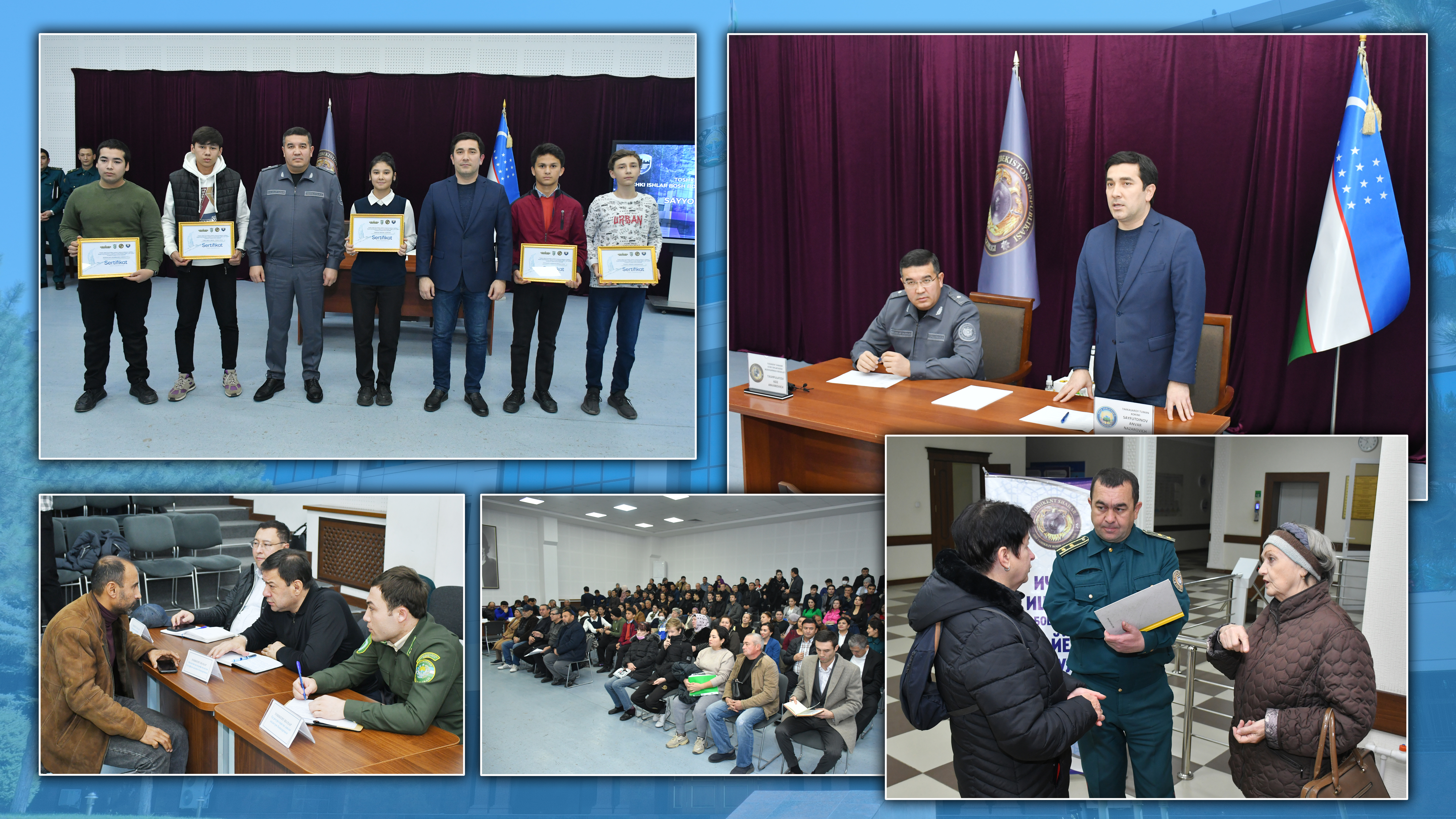 Приём жителей проходил в махаллинском сходе граждан «Конституция» и проводил его начальник ГУВД города Ташкента генерал-майор Азиз Ташпулатов. В приёме граждан также участвовали хоким и начальник УКД ОВД Яккасарайского района, представители хокимията, жилищно-коммунальных и дорожной служб, активисты махалли. В ходе выездного приёма было заслушано более 40 обращений от жителей. Граждане обращались по вопросам, касательно здравоохранения, решении проблем в сфере жилищно-коммунального хозяйства, благоустройства, а также просьбы о практической помощи в организации предпринимательской деятельности. Благодаря участию в приёме представителей профильных ведомств и организаций, 17 обращений граждан были решены на месте. По ряду обращений установлены сроки рассмотрения в соответствии законодательством, заявителям даны юридические консультации. На встрече 7 молодым людям были переданы необходимое оборудование, направления для подготовки на профессиональных учебных курсах, сертификаты на оплату контракта. 5 гражданам была оказана материальная помощь, ещё 5 жителей поблагодарили начальника ГУВД за своевременное решение их обращений.