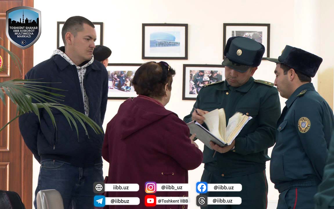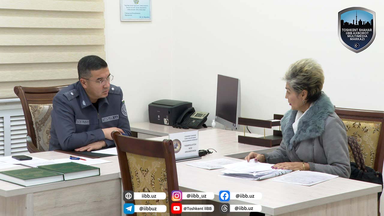 В целях решения волнующих граждан вопросов в ГУВД г. Ташкента на регулярной основе руководством организуются приемы граждан. Очередной открытый диалог привел начальник ГУВД Ташкента генерал-майор Азиз Ташпулатов. В нем приняли участие руководители и ответственные сотрудники отраслевых подразделений ГУВД.