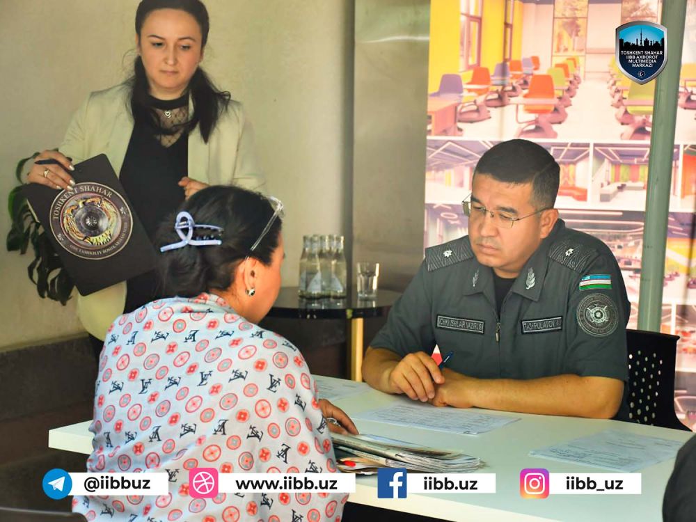В свою очередь, руководством ГУВД г. Ташкента в районах проводятся выездные приемы, уделяется особое внимание обращениям физических и юридических лиц.